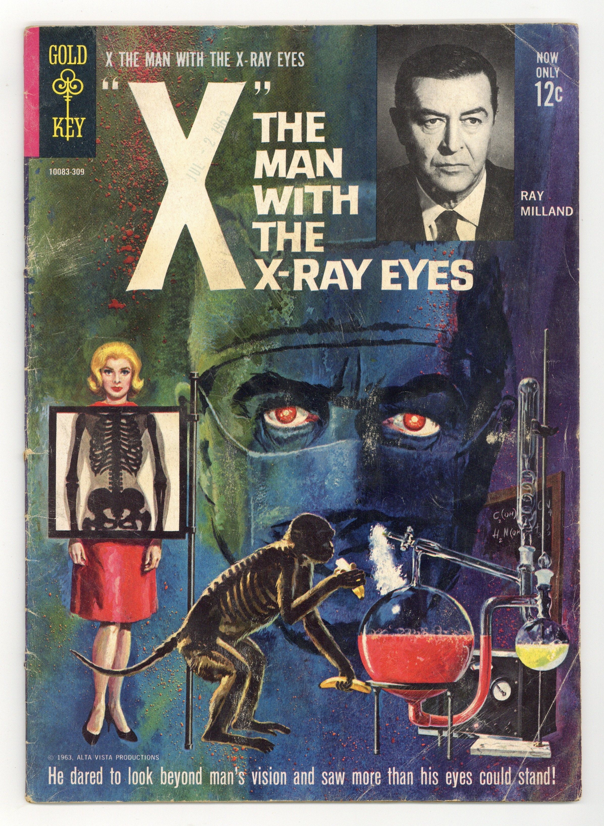 #10083-309 on cover. Cover painting by George Wilson. Inset cover photo of Ray Milland. Inside front cover intro with movie photo. "X, the Man with the X-Ray Eyes," script by Paul Newman, art by Frank Thorne; A doctor takes eye drops that give himself x-ray vision, but he gets more than he bargained for. Based on the 1963 film. Atomic Energy, Number 9: Alpha, Beta and Gamma Rays article. Back Cover reprint of the front cover as a pin-up. 36 pgs., full color. $0.12. Cover price $0.12.