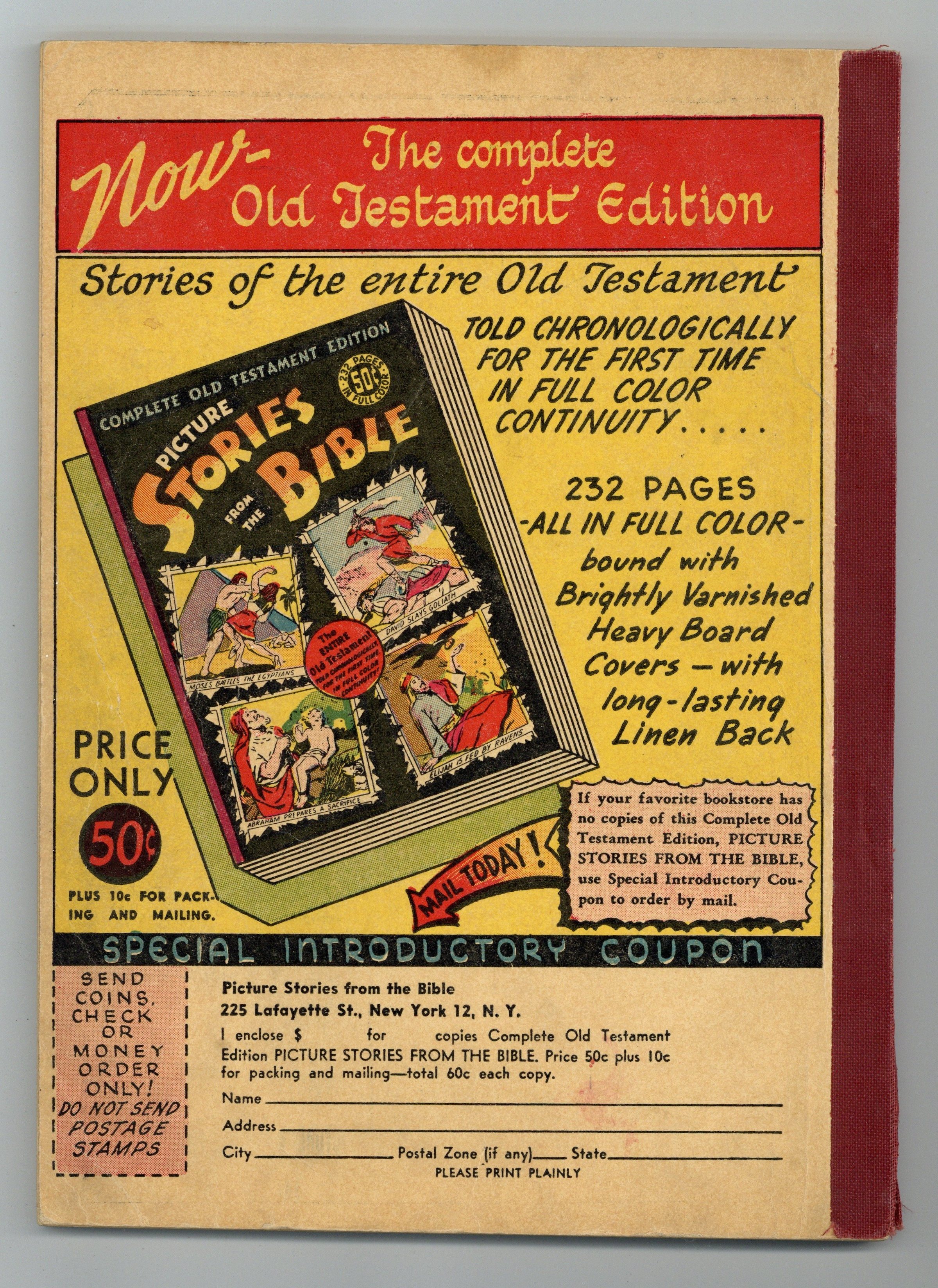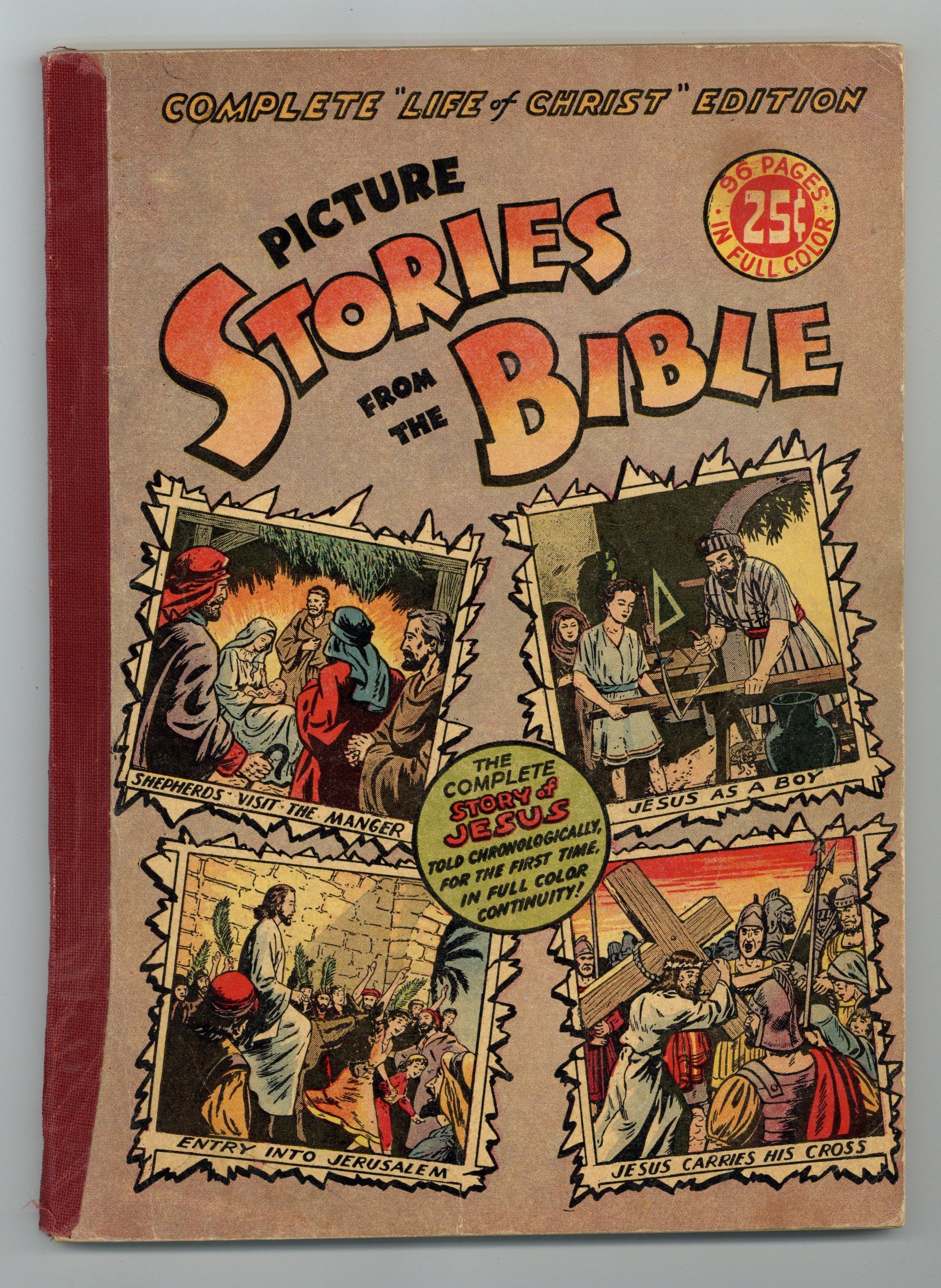 Collects issues #1-2 of Picture Stories from the Bible (New Testament). Cover by Don Cameron. Stories and art by Montgomery Mulford, Edward L. Wertheim and Don Cameron. A very early religious book from EC, back when the company was still run by Max Gaines and called "Educational Comics." This features the life, death and resurrection of Jesus Christ. NOTE: Cover says 96 pages, book actually has 48 pages. The Story of Jesus Part One; The Story of Jesus Part Two; Palestine in the Time of Christ; Chronological Index and Scripture References. 48 pages, Full Color. Cover price $0.25.