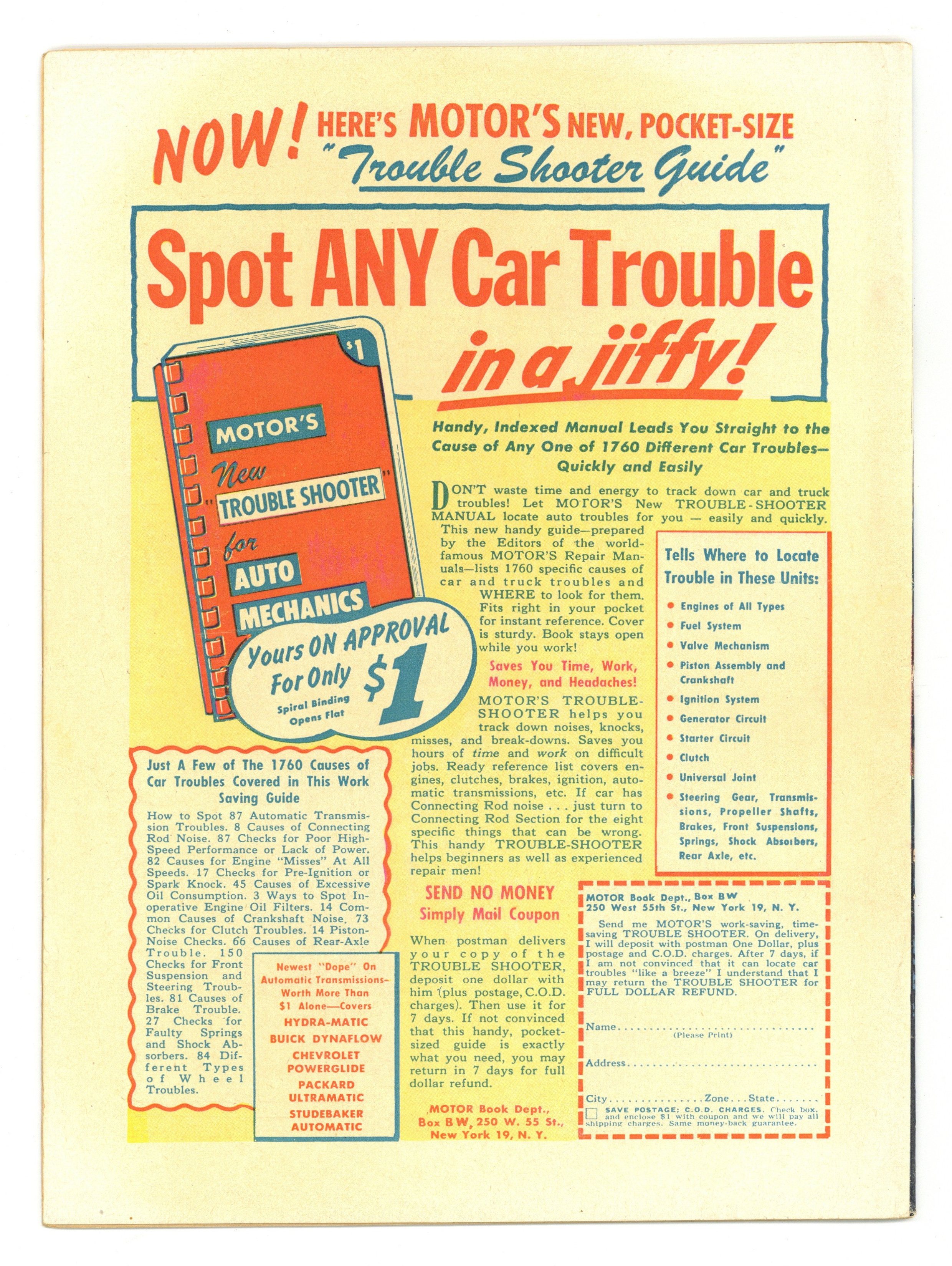 $50.00Cover by John Prentice. Art by Bill Ely and Gerald McCann. Another crime comic from the prolific studio of Joe Simon and Jack Kirby, this one featuring crimes throughout history as well as the standard gangster tales. Sometimes listed as Real Clue Crime #74. No issue # on cover; Vol. 7, issue #2 in indicia. A rookie cop learns respect for a disabled veteran of the force. A gangster is tracked down by the ex-partner he double-crossed years before. A French thief becomes determined to win back the woman he once loved. The Vice President's Finger; Magic Eyes Of the Law; The Sitting Cop; The Gun That Lied; The Innocent Reaper; Little Gold Rogue's Gallery. 32 pages, Full Color. Cover price $0.10.