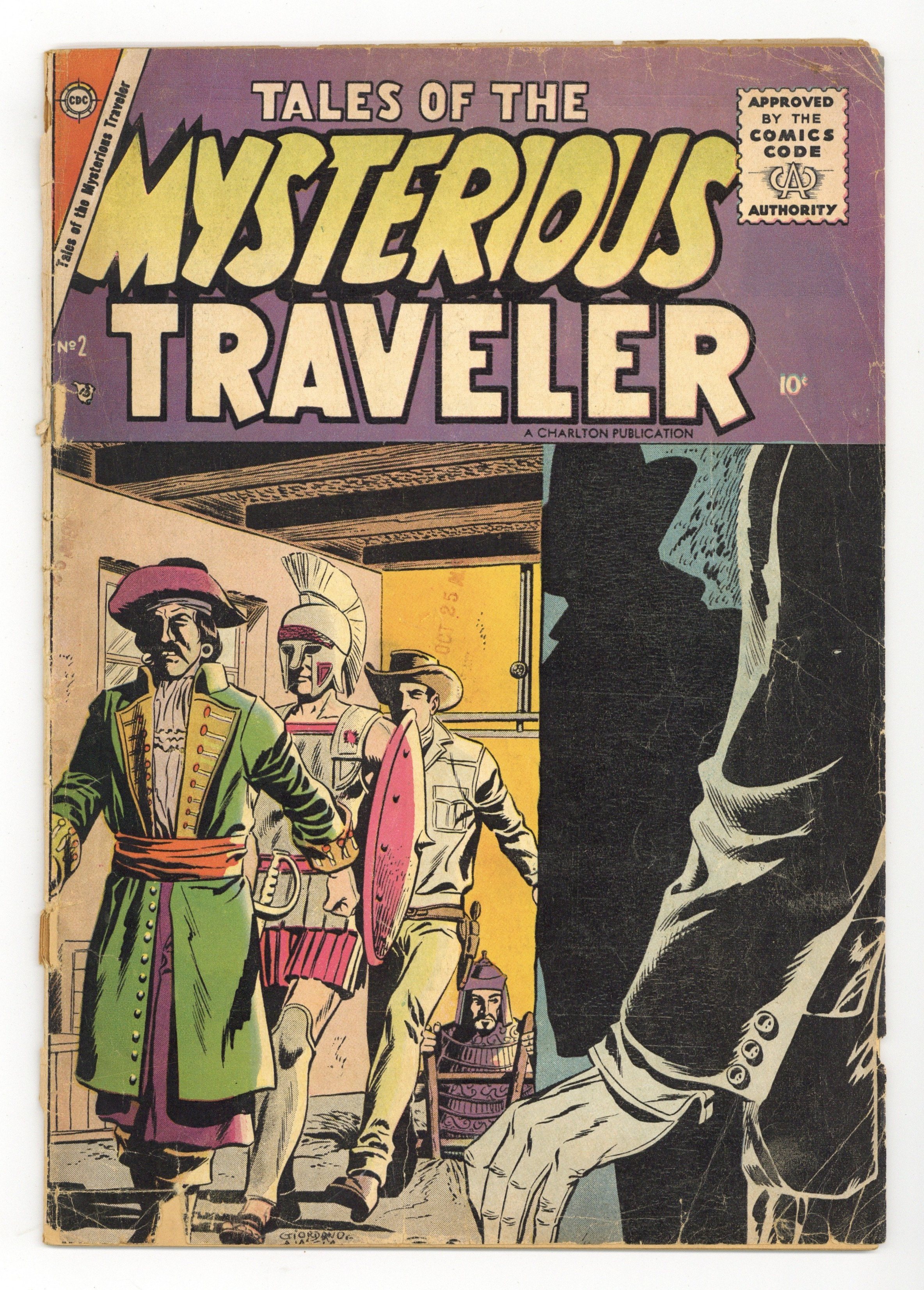 Edited by Al Fago. Cover by Dick Giordano and Vince Alascia. Written by Joe Gill and unknown. Art by Steve Ditko, Dick Giordano, Vince Alascia, Bill Molno, Sal Trapani and unknown. Chilling, thrilling and frequently fulfilling Tales of the Mysterious Traveler! In this issue: "What Wilbur Saw..." by Joe Gill and Steve Ditko; "The Cruel Dream" with art by Dick Giordano; "The Sentinel!" with inks by Vince Alascia; "From the Depths of the Sea" with art by Bill Molno and Sal Trapani; and "The Urgent Call" with art by Molno and Trapani. Plus: 2-page text story "What Makes an Unusual Experience?" Also: Ad for Mickey Mouse projector and theater. 32 pages, full color. Cover price $0.10.
