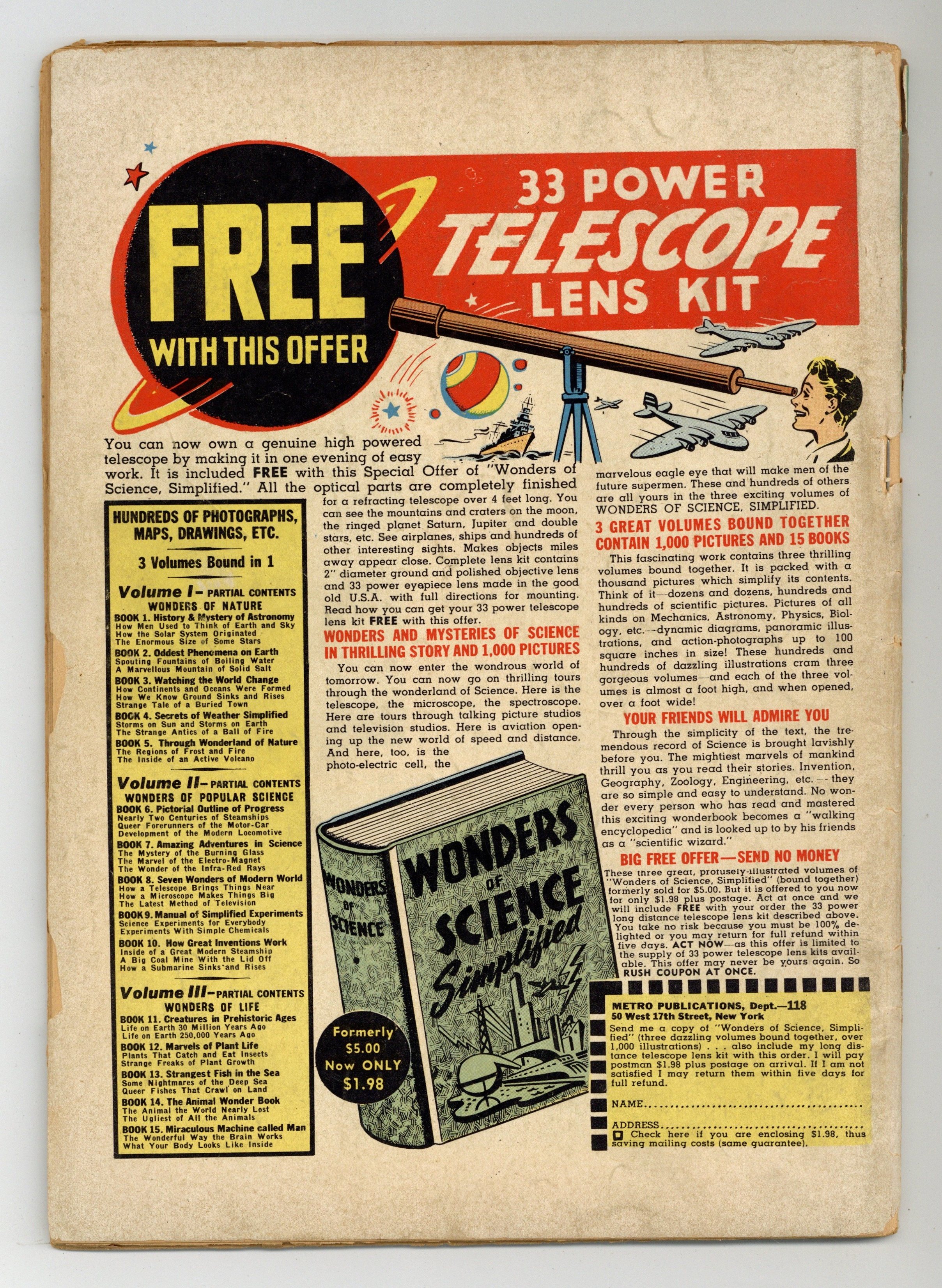 $35.00- 5" cumulative spine split. Cover and centerfold detached. Oxidation.