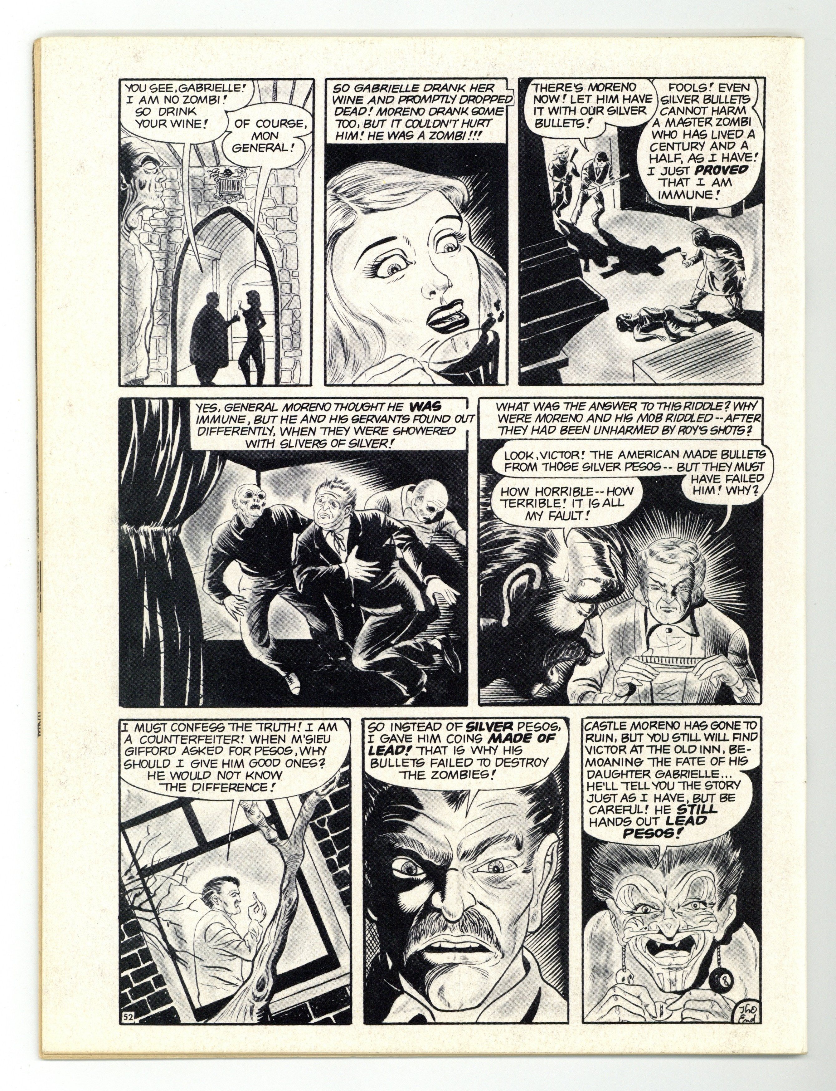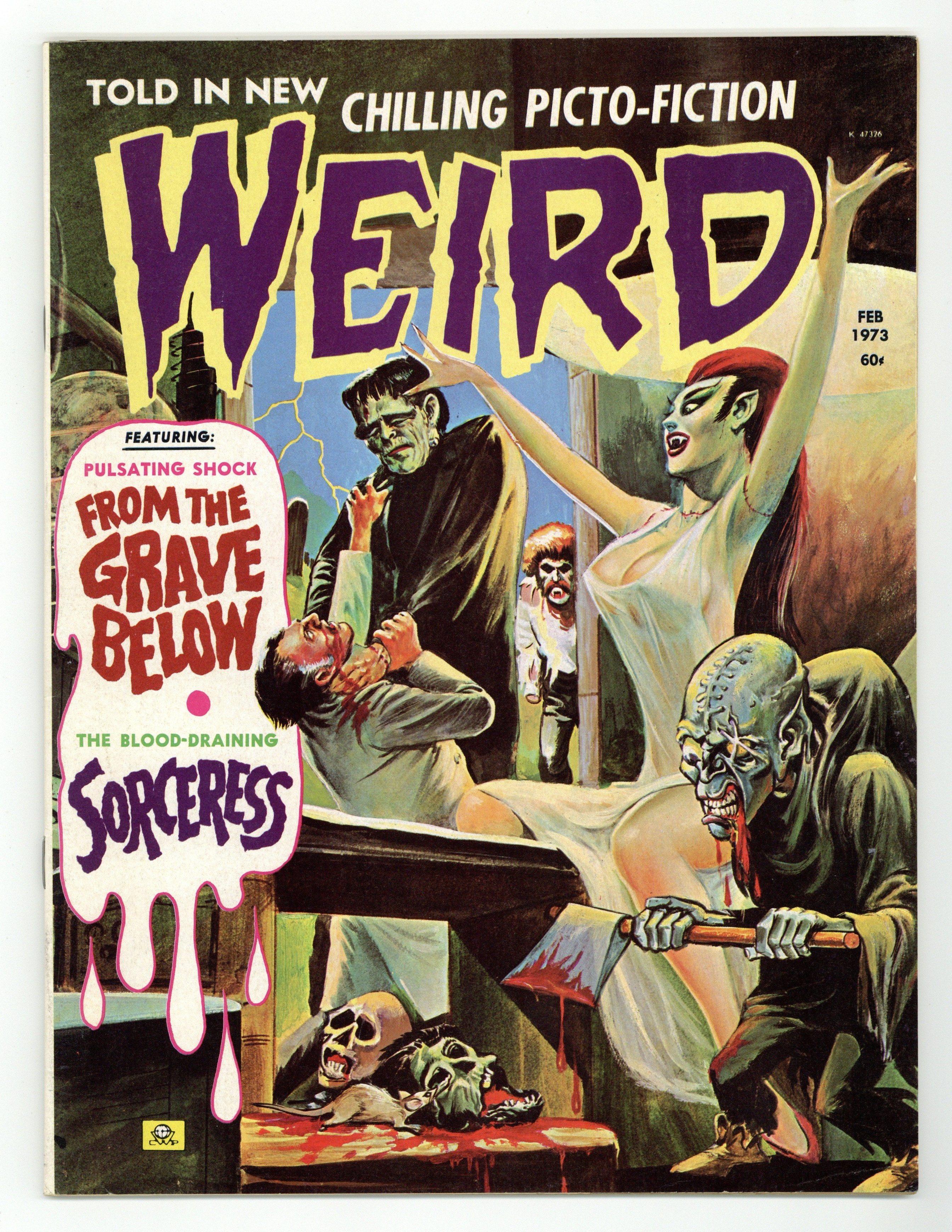 $38.50Stories and art by Antonio Reynoso and Oscar Fraga. The first series from 1960s publisher Eerie presents gory tales of horror and the macabre, many "reanimated" from classic pre-Code horror comics. A washer-woman discovers her legacy of witchcraft from a Salem ancestor: magic gloves. A tailor creates garments that come to life and strangle their owners. A carnival fortune-teller has a special fortune for a man, but only if he returns to her tent at midnight. The Sorceress; From the Grave Below; The Vampire; Sacrifice; Evil Cat; Bloody Talus; Zombi's Bride. 8 1/2-in. x 11-in., 48 pages, B&W. Mature readers. Cover price $0.60.