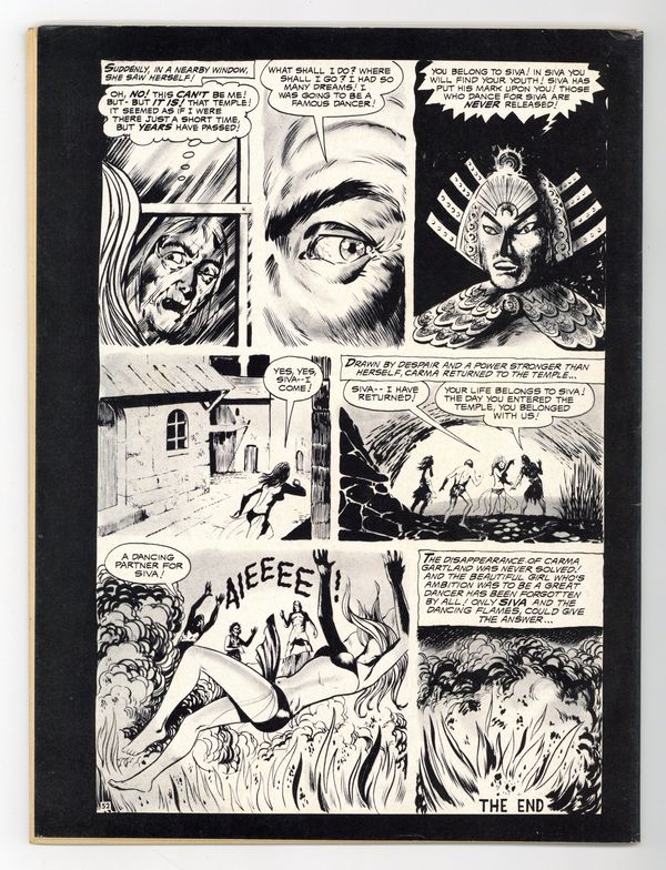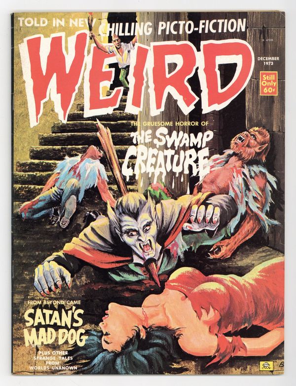 $38.50Cover by Behan. Stories and art by Walter Casadei, Leandro Sesarego, Nestor Olivera and Domingo Mandrafina. The first series from 1960s publisher Eerie presents gory tales of horror and the macabre, many "reanimated" from classic pre-Code horror comics. Oil prospectors in the Amazon run afoul of the beast from Black Swamp. A businessman makes a deal with the devil to get revenge on the partners who forced him out. A man who hates snakes winds up on an island populated by snakes and a beautiful woman. Swamp Creature; Satan's Mad Dog; Snakepit; Silent Horror; Blood-Bath; Skin Rippers; Terror Asteroid; The Witch's Horror. 8 1/2-in. x 11-in., 48 pages, B&W. Mature readers. Cover price $0.60.