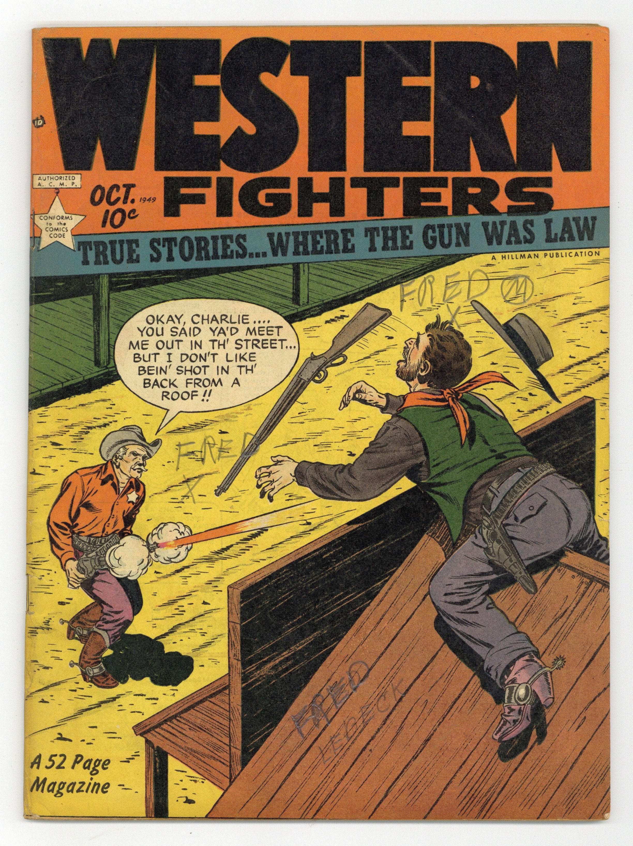 $41.00Stories and art by Al McWilliams, Al Eadeh, Paul Reinman, Jules Steiner, Al Williamson and Frank Frazetta. Outlaws, gunfighters, and tales of the Old West - some true, and others merely legends. The story of legendary outlaws Butch Cassidy and the Sundance Kid and their flight to South America (a different version than the one that appeared in issue #8). Peggy inspires incredulity when she decides to head West and teach English to the Apaches. Sam Maverick, Texas patriot and land baron, works a deal with a tenant farmer that results in the word "maverick" entering the English language - featuring early art by EC legend Al Williamson and comics and fantasy legend Frank Frazetta. Wallace of the Rangers; Butch and the Sundance Kid; Peace Pipe Peggy; Murrell's Marauders; Why They Call Them Mavericks; Nothin' on Top; Brainstorm Scully; Dead Right; The Cannon. 48 pages, Full Color. Cover price $0.10.