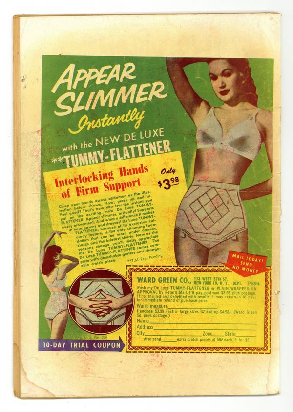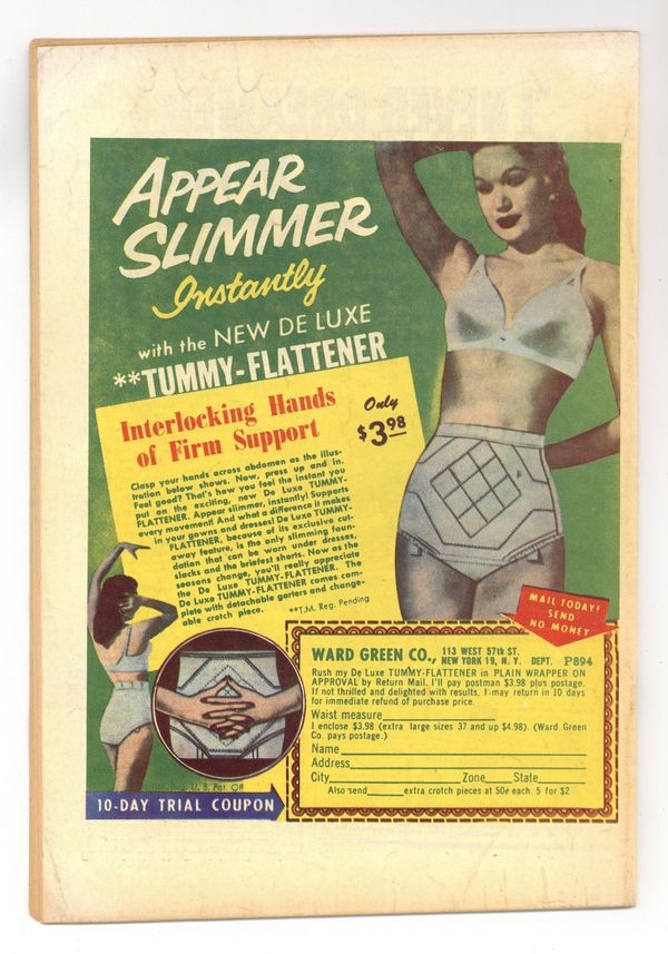 $71.00Volume 1, Issue 5. Whole number 5. Art by Natalie Krigstein, John Prentice, Bill Draut, and Mort Meskin. Another spinoff of the Young Romance comics series, created and produced by Captain America creators Joe Simon and Jack Kirby. Julie gets a job and leaves Frank home to take care of the baby, a radical concept in 1953. Ellie faces heartache when she learns she was adopted as a baby. Gary seeks Hildy's advice on girls, but doesn't love her until she's already married. Let's Change Places; Kiss and Keep Quiet; Stepchild; Too Young to Be Married; Button Up Your Overcoat; Don't Cry on My Shoulder. 36 pages, full color. Cover price $0.10.