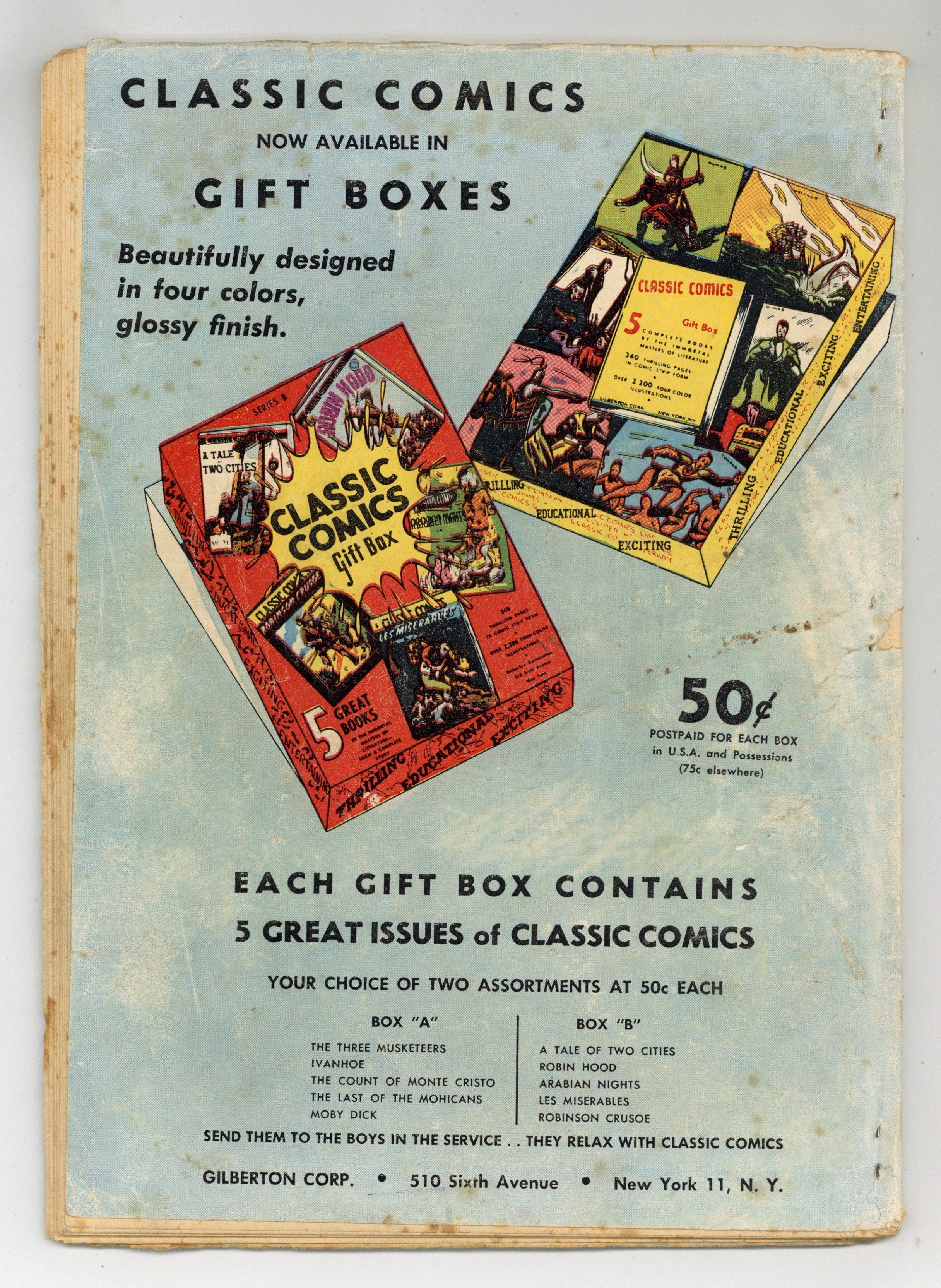 Published Nov 1943 by Classics Illustrated.$48.00- Full spine split, three innermost wraps detached.