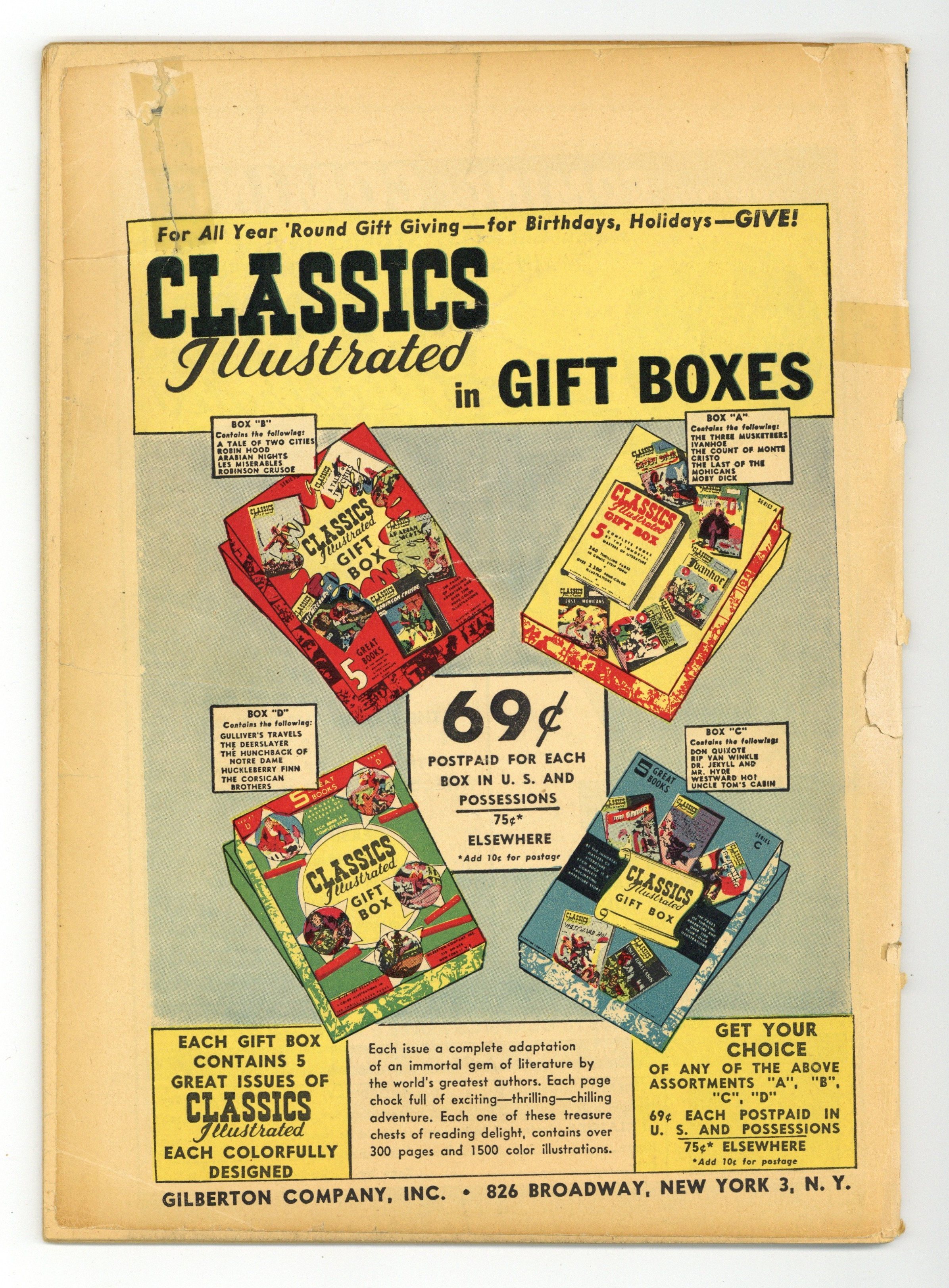 Published 1947 by Classics Illustrated.$23.00- 4" Cumulative spine split. Cover held on by tape.