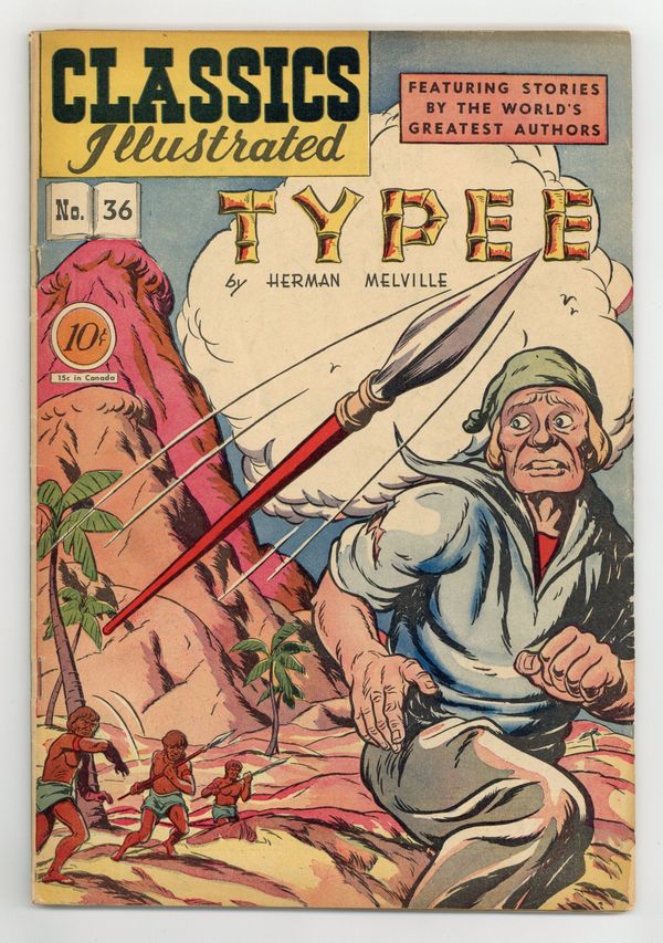 Published Apr 1947 by Classics Illustrated.$5.00Typee, 1st Printing, Line Drawing Cover. (HRN 36, 4/47). Cover price $0.10.