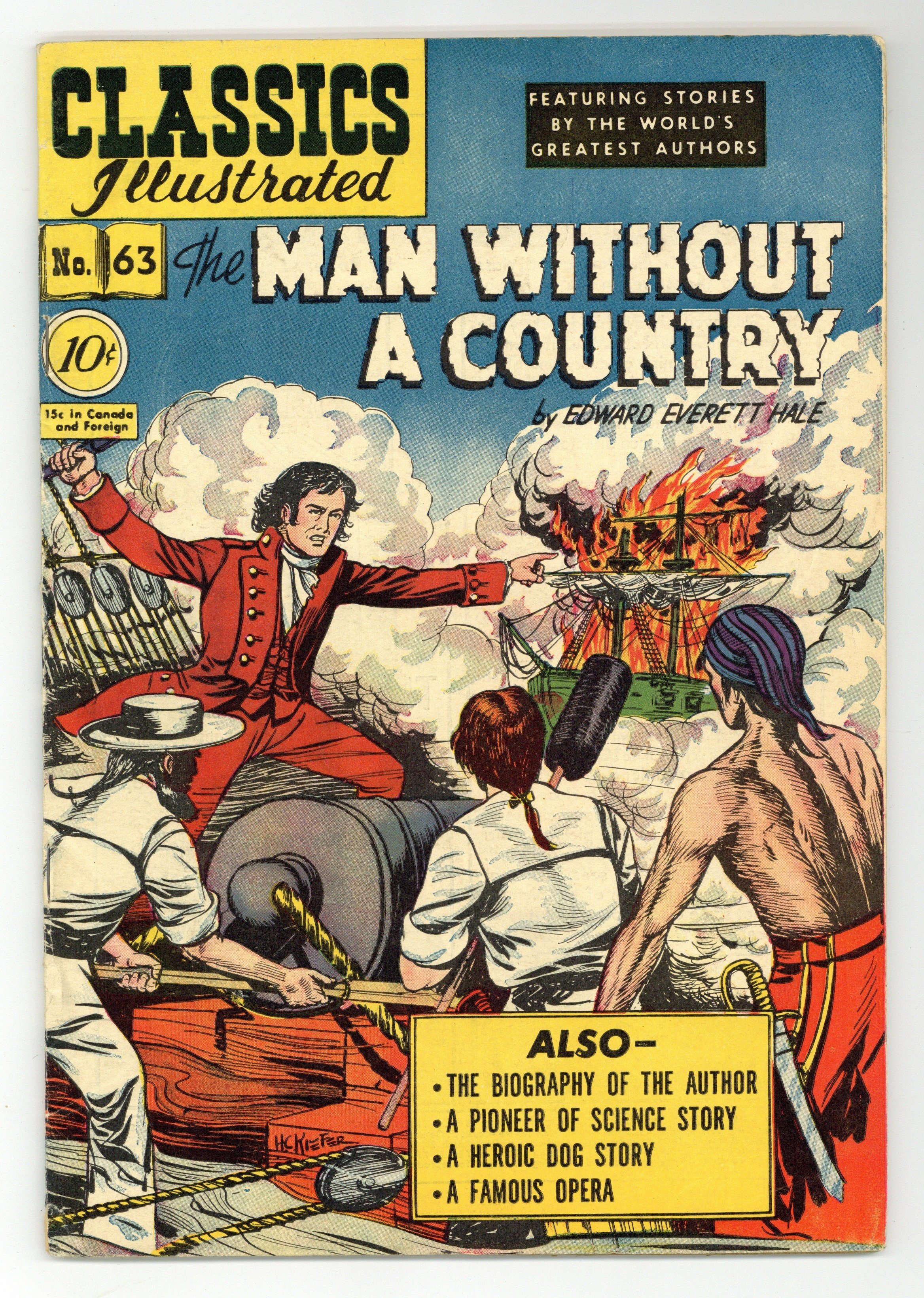 Published Sep 1949 by Classics Illustrated.$2.65The Man Without a Country, 1st Printing, Line Drawing Cover. (HRN 62, 9/49). Cover price $0.10.