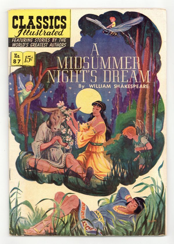 Published Sep 1951 by Classics Illustrated.$19.25A Midsummer Night's Dream, 1st Printing, Painted Cover. (HRN 87, with 9/51 date). Cover price $0.15.
