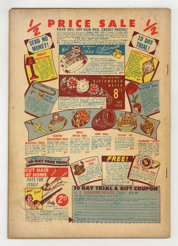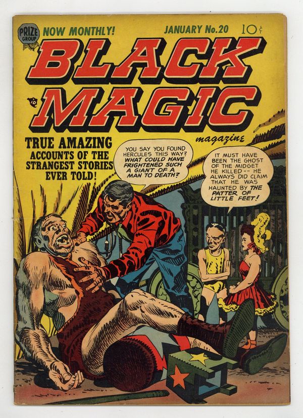 Cover by Jack Kirby. Art by John Prentice, Alden McWilliams, Manny Stallman, George Roussos, Bob McCarty, Bill Draut, Joe Simon and Jack Kirby. Captain America creators Joe Simon and Jack Kirby present their own contribution to the horror comics trend of the 1950s, featuring tales of ghosts and the paranormal. Issue # 20 on cover; listed as Vol. 3, issue #2 in indicia. A circus strongman is haunted to madness by the sound of his victim's footsteps. A man faces grim torture, but his torturer gets his comeuppance. Pilots who fly too fast find themselves growing younger. Birth After Death; Hatchet Man; Pied Piper of Flame; Ruby Riddle; The Patter of Little Feet!; Oddities in Miniature - The Strangest Stories Ever Told!; The Malay Boot!; Paid in Full; Crash Report. 44 pages, Full Color. Cover price $0.10.