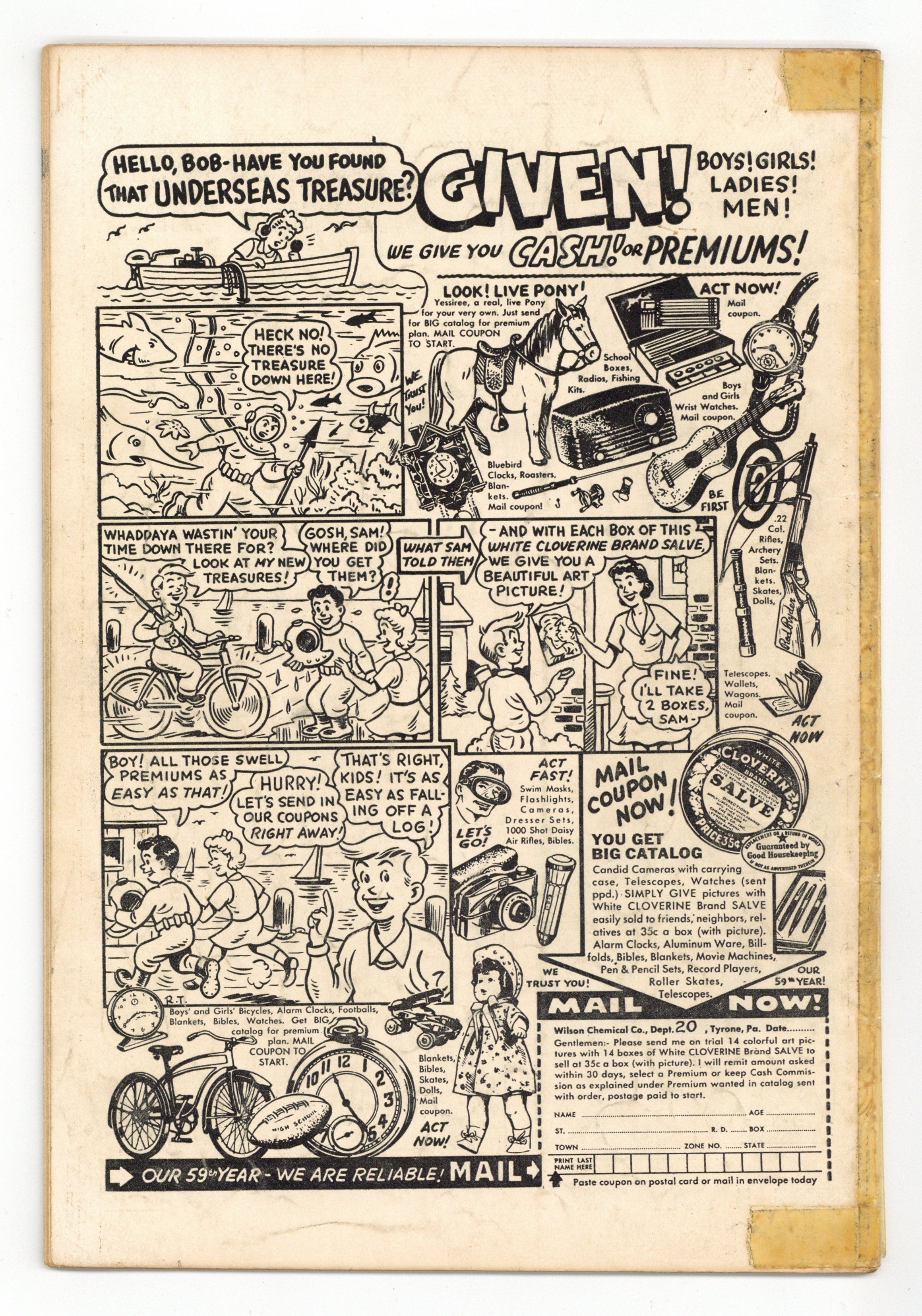 Published Dec 1954 by Story Comics.$77.00- Centerfold detached at one staple. Cover margin and spine taped.