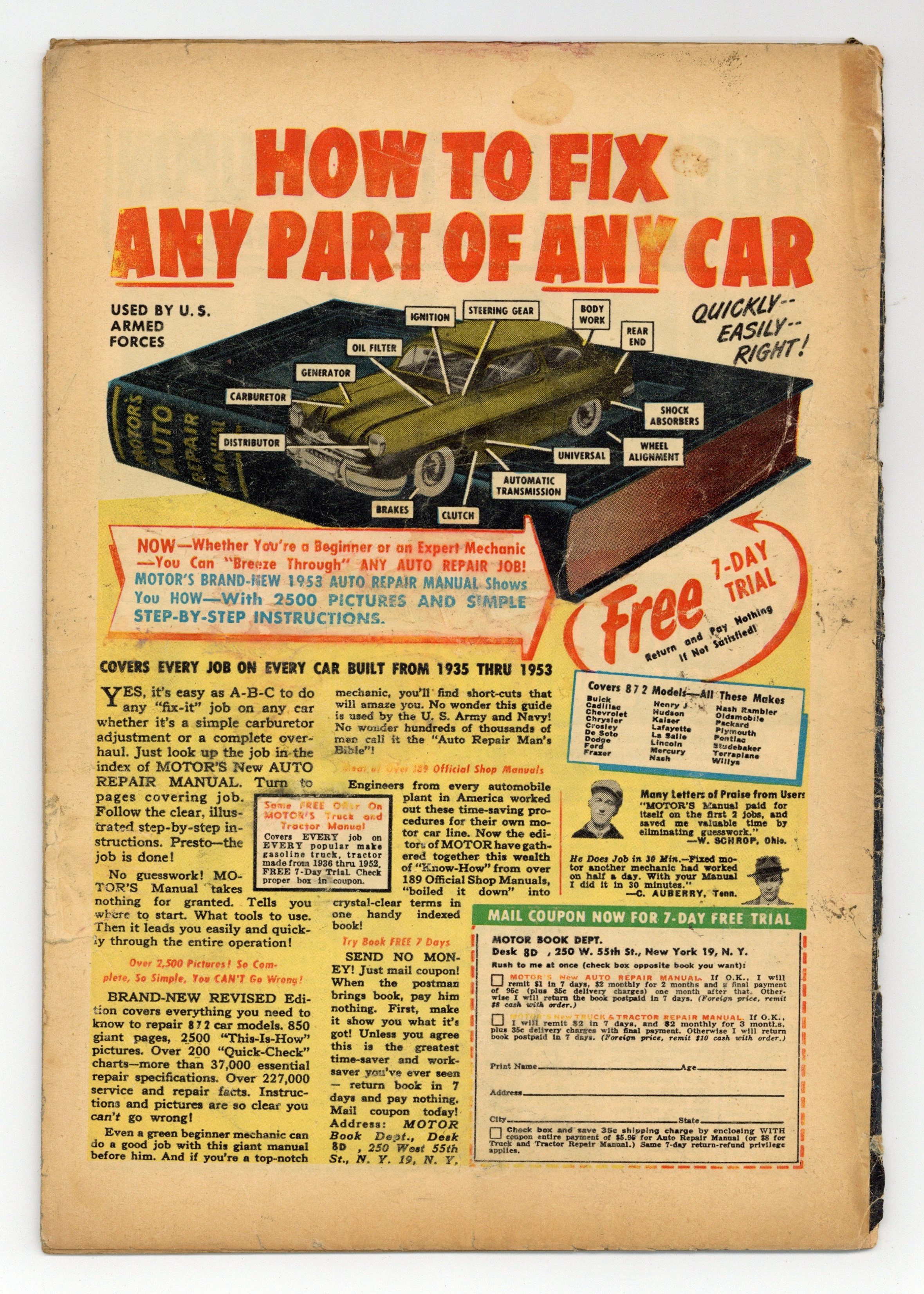 "The Werewolf Takes a Wife" (art by Paul Reinman), "Arrival" (art by Tony Mortellaro), "Her Other Face," "Initiation Fee," "Double or Nothing" (art by Tony DiPreta), and a two-page text story, "Pearls of the Dead." 36 pages. Cover price $0.10.