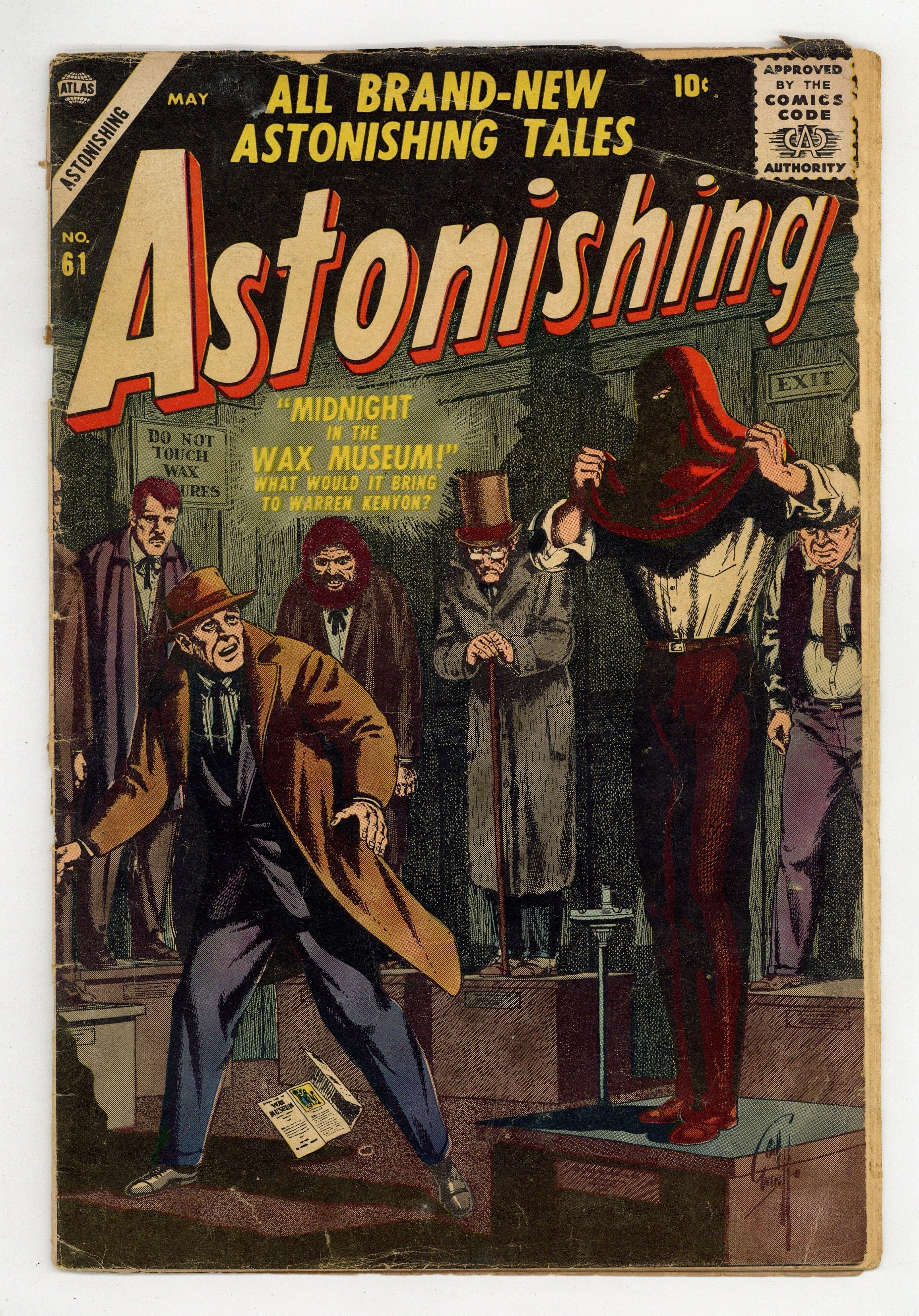 Cover art by Bill Everett. Midnight in the Wax Museum!; A reporter lets his imagination get the better of him when he accepts a bet to spend the night in a wax museum. Mystery in Mid-Air, art by John Forte. The Treasure Seekers text story, art by Mort Drucker. The Frightful Film!, art by Gray Morrow. The Floating Man, art by Joe Orlando. The Too Late Show, art by Ed Winiarski. The Creeping Threat!, art by John Romita. 36 pgs. $0.10. Cover price $0.10.