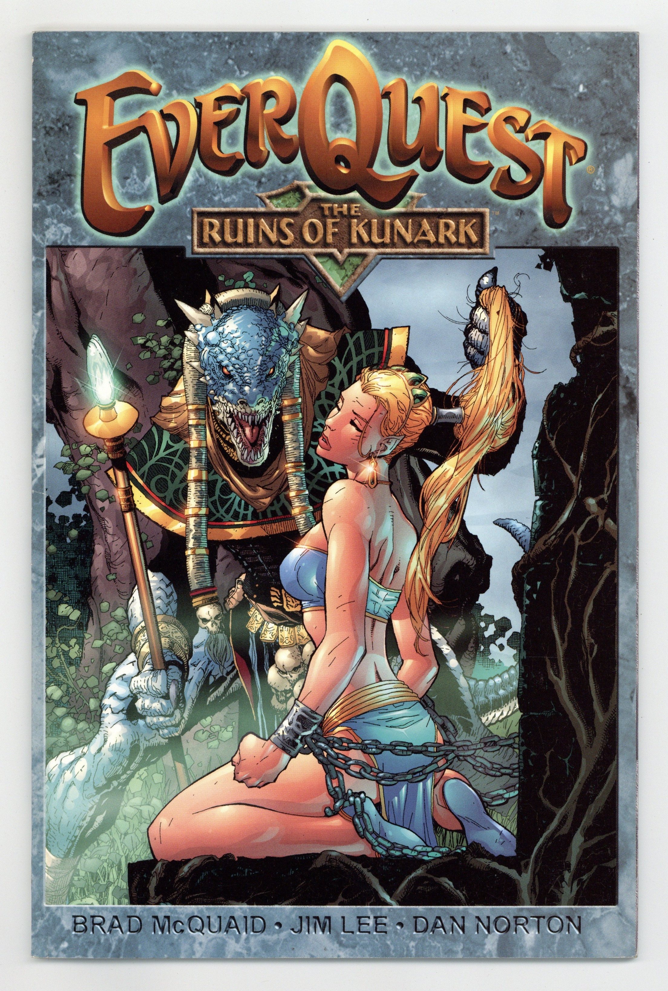 $25.00WRITTEN BY JIM LEE AND BRAD MCQUAID; ART BY LEE AND DAN NORTON; COVER BY LEE WildStorm Productions produces the first comic inspired by the mega-popular online fantasy role-playing game! Journey to the land of Kunark alongside High Elven Princess Firiona Vie, as she and her comrades-in-arms must stop an unholy alliance. The great Elven Armies stand ready to defend the realm. But will they be enough to vanquish the rising darkness that threatens all of Norrath? For more information, see the feature article. Prestige Format. FC, 48 PG $5.95 Cover price $5.95.