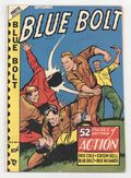 Published Sep 1948 by Funnies, Inc..$24.00Cover by Jack Hearne. Stories and art by James Wilcox, Jack Callahan, Art Helfant, Milt Hammer, Harry Lazarus and Henry Kiefer. Sometimes listed as Blue Bolt #94. Blue Bolt has adventures while flying for Glimpses, a photography magazine. While on a student exchange in Australia, Dick Cole and his fellow cadets help a man beset by bandits and find adventure. On a beach outing with Bonnie, Grover's automatic fishing rod reels in a pirate in a mini-submarine. Edison Bell and Jerry help a family stranded by a fallen tree during a storm. Edison Bell tells young readers how to make a sled-mobile. Dick Cole; Two-Ton O'Toole; Easy Cartooning: Lesson 5; Blue Bolt; Grover and Bonnie; Sarge Has His Say; Dink; Rick Richards; Edison Bell; Sled-Mobile. 48 pages, Full Color. Cover price $0.10.