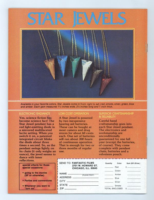 Published Jun 1979 by Blake Publishing.$7.00Vol. 2 #2 in indicia. June 1979 on cover. Subtitled The Magazine of Visual Fantasy & Science Fiction, Fantastic Films #8 includes: Richard Donner interview, Science Fiction on Television, One Last Time Down the Death Star Trench, Robert Altman on Quintet, Geof Darrow profile and poster, Superman The Movie location report, Invasion of the Body Snatchers overview, a new look at The Conquest of Space, and Jean Rogers interview and scrapbook. Cover price $2.00.
