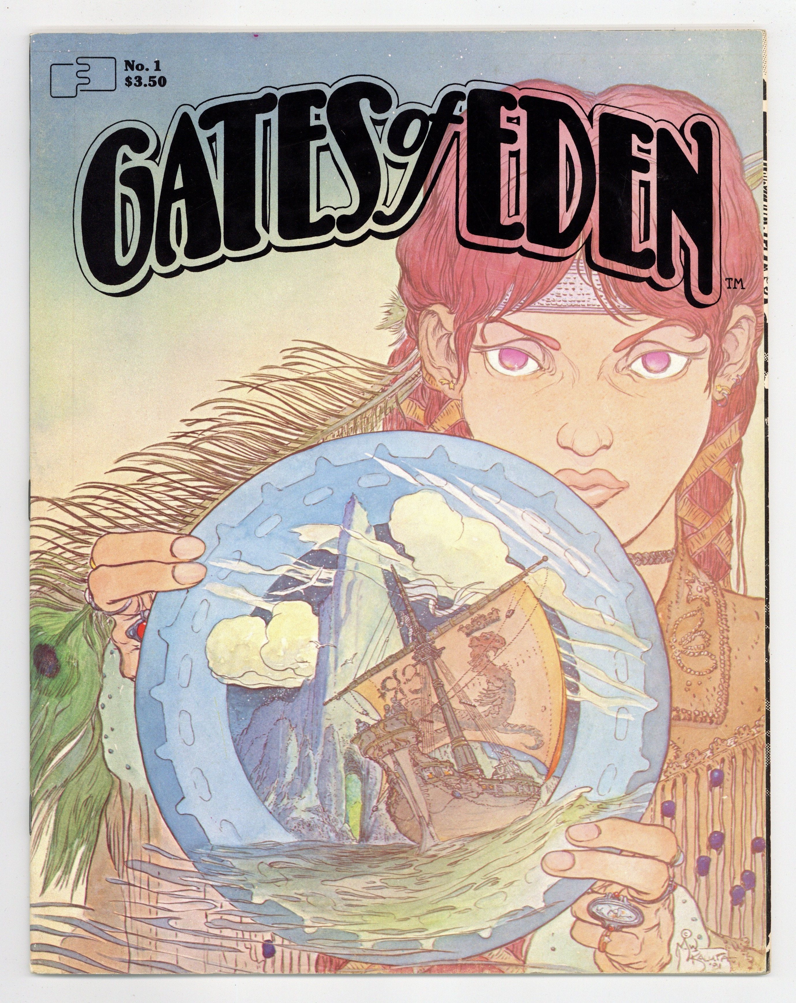 Oddball anthology combining mainstream and underground comics artists. Get a load of this lineup: Steve Leialoha, John Byrne, Foolbert Sturgeon, Jim Starlin, Rick Griffin, Michael T. Gilbert, Fred Hembeck, Trina Robbins, Lee Marrs, Jeffrey Jones, P. Craig Russell, Rick Geary, Kim Deitch, Spain, Sharon Rudahl, Gary Hallgren and John Caldwell! The last page advertises the never-printed second issue, which would have featured the likes of Frank Miller, Neal Adams and George Perez. Cover by Michael Kaluta. Mature readers. Black and white; 52 pages. Cover price $3.50.