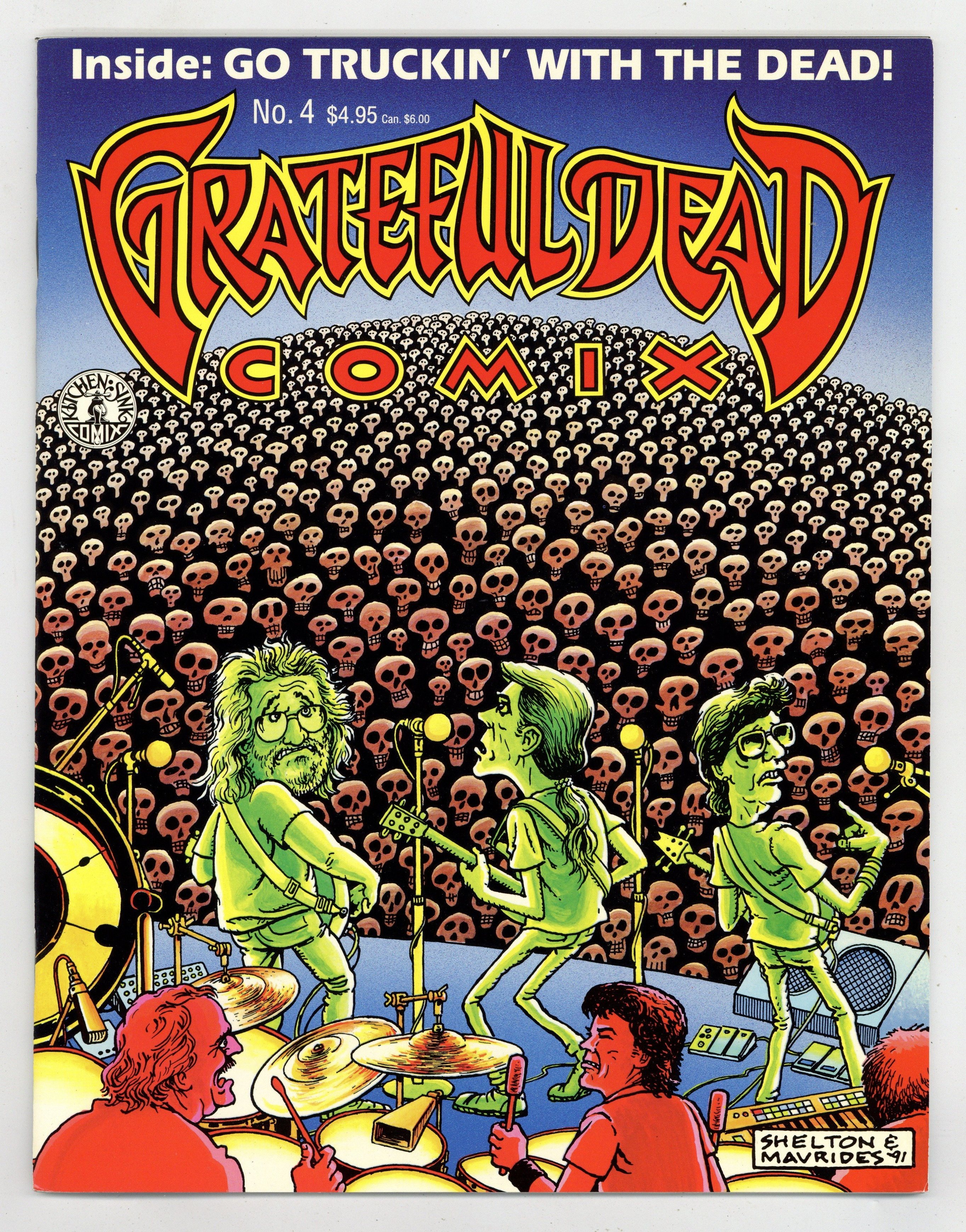 Published 1992 by Kitchen Sink.$11.50Comics adaptations of Grateful Dead songs: Truckin' by Nina Paley, Mexicali Blues by Pat Redding, Jack Straw by Tim Truman, and St. Stephen by Mary Fleener. Cover by Gilbert Shelton and Paul Mavrides of the Freak Brothers. Also the only cover to show the whole Grateful Dead band. Cover price $4.95.