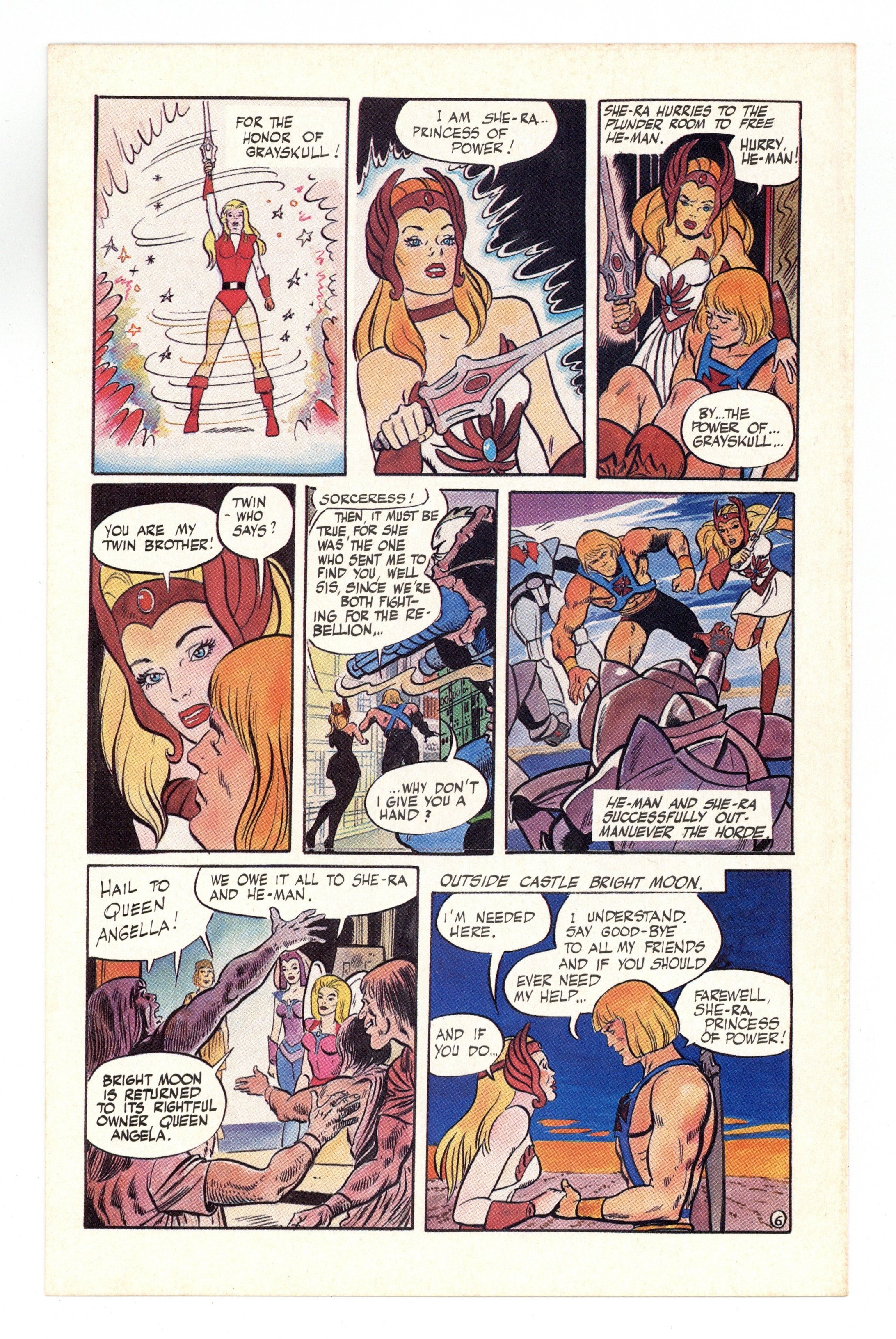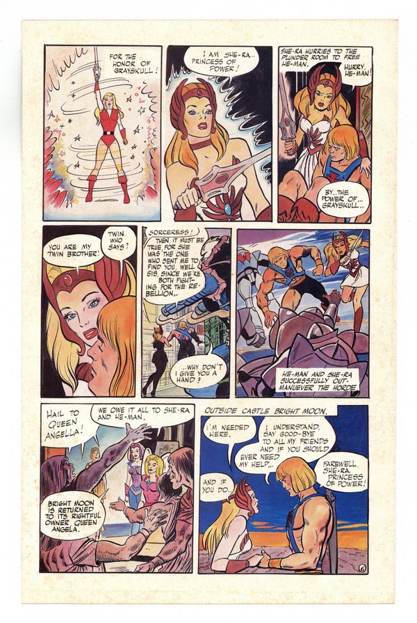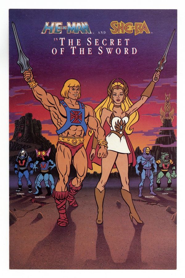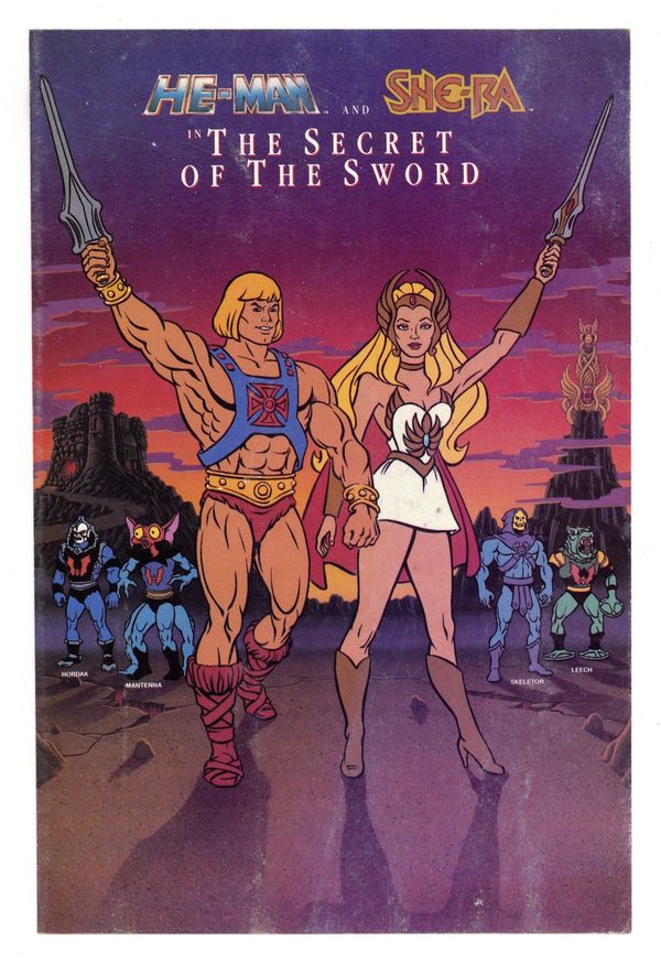 He-Man and She-Ra, Secret of the Sword was published in 1985 by Mattel Toys as part of their "The Secret of the Sword Sweepstakes." The inside front cover is the contest entry page. The comic was handed out at movie theaters prior to seeing the movie. The story runs six pages and recaps the movie. Full-color, comic book-sized, 8-pages.