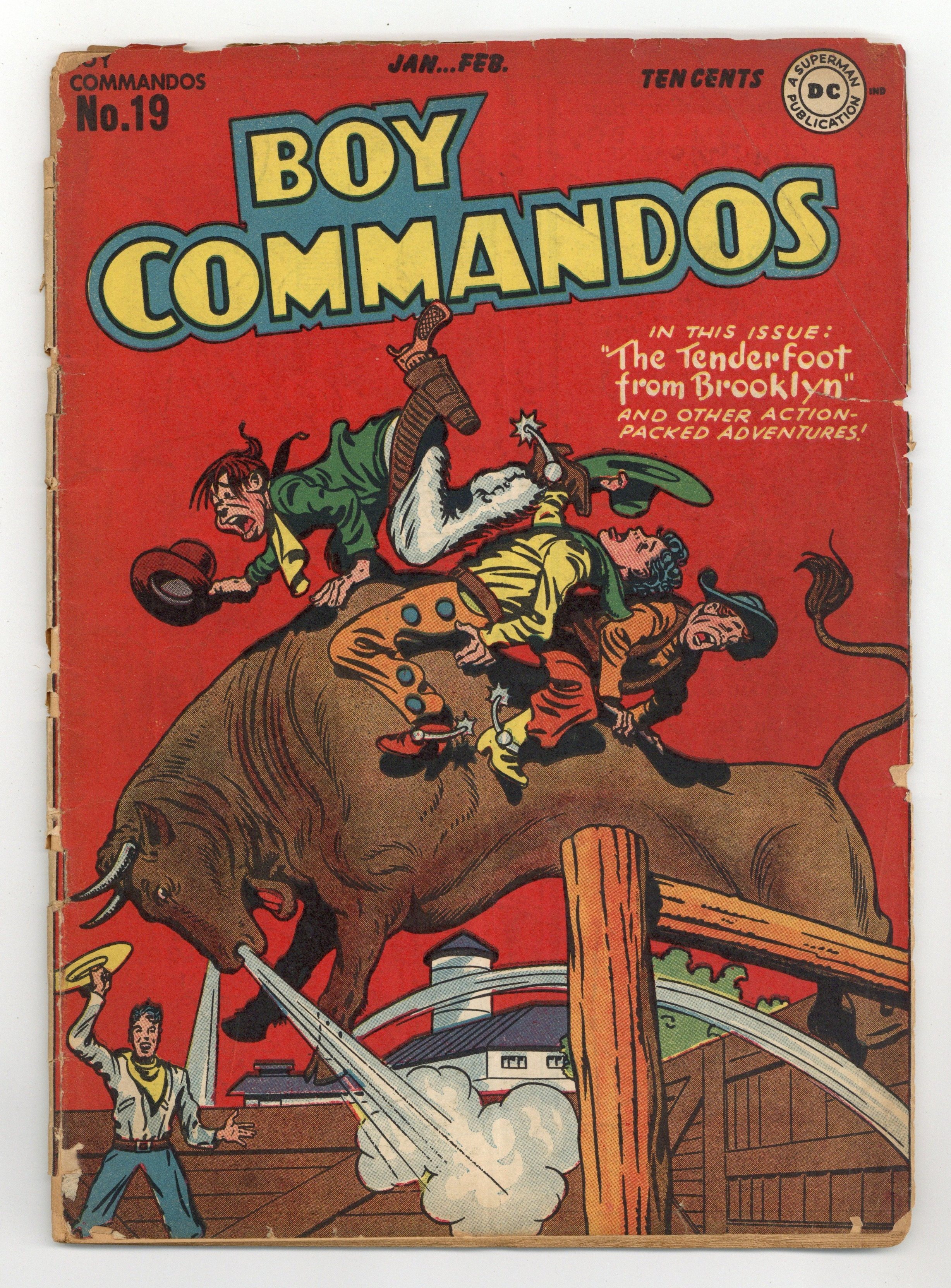 Cover pencils by Jack Kirby, inks by Louis Cazeneuve. Saga of Rip Van Carter; Brooklyn and Rip visit Brooklyn's uncle in the Catskills and fall asleep for twenty years; they have to prove to Alfy and Andre that they're the real deal by capturing Prof 10. Torpedo Pirates starring Rip Carter. Untitled Super-Sleuth McFooey story, script and art by Jack Farr. Badge of Office text story by Paul Denby. Nervous Norman humor page by Phil Berube. Tenderfoot From Brooklyn. 52 Pages, Full Color. Cover price $0.10.