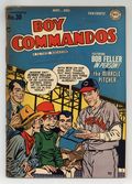 Cover pencils by Jack Kirby, inks by Steve Brodie (ghosting for Joe Simon). The Miracle Pitcher, pencils by Curt Swan; Major league pitcher Bob Feller helps the Boy Commandos on the case, even if he doesn't play with the Dodgers. Willy humor page by Phil Berube. The Triumph of William Tell, pencils by John Severin; Brooklyn tests a supersonic plane and goes back in time to William Tell's day. Jerry The Jitterbug humor page by Henry Boltinoff. The Substitute Boy Commandos; The Boys want to go on vacation and ask Rip to come up with substitutes to replace them. 52 Pages, Full Color. Cover price $0.10.