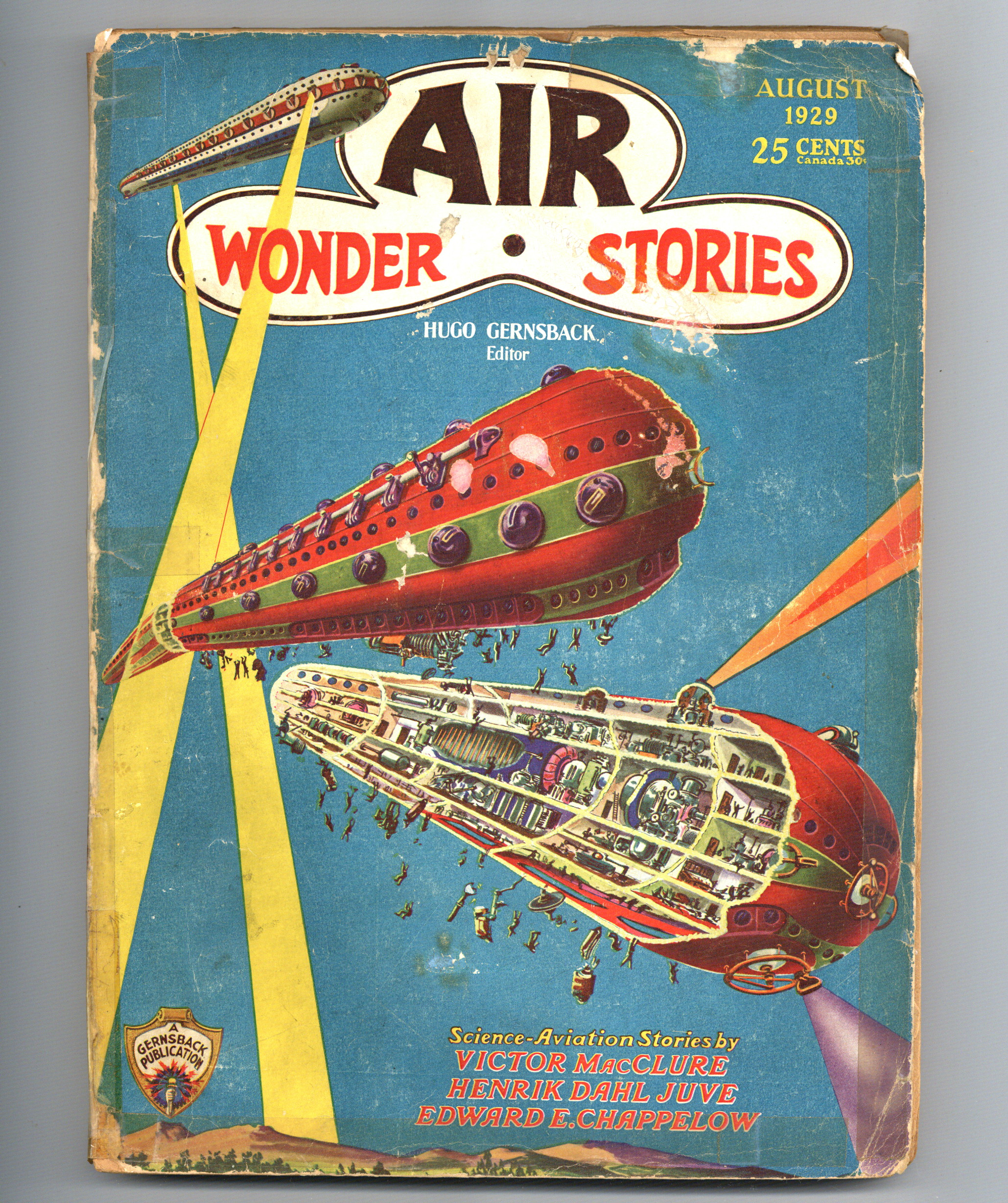 Published Aug 1929 by Stellar Publishing.$18.00August 1929 - Vol 1 Issue 2. Cover by Frank R. Paul. Other stories include "Beyond Gravity" by Ed Earl Repp; "The Ark of the Covenant" (part 2 of 4) by Victor MacClure; "The Planet's Air Master" by Edward E. Chappelow and an aviation questionnaire, news of the month and letters from the readers. Measures 8 1/2" x 11 3/4", 100 pages, B&W. Cover price $0.25.