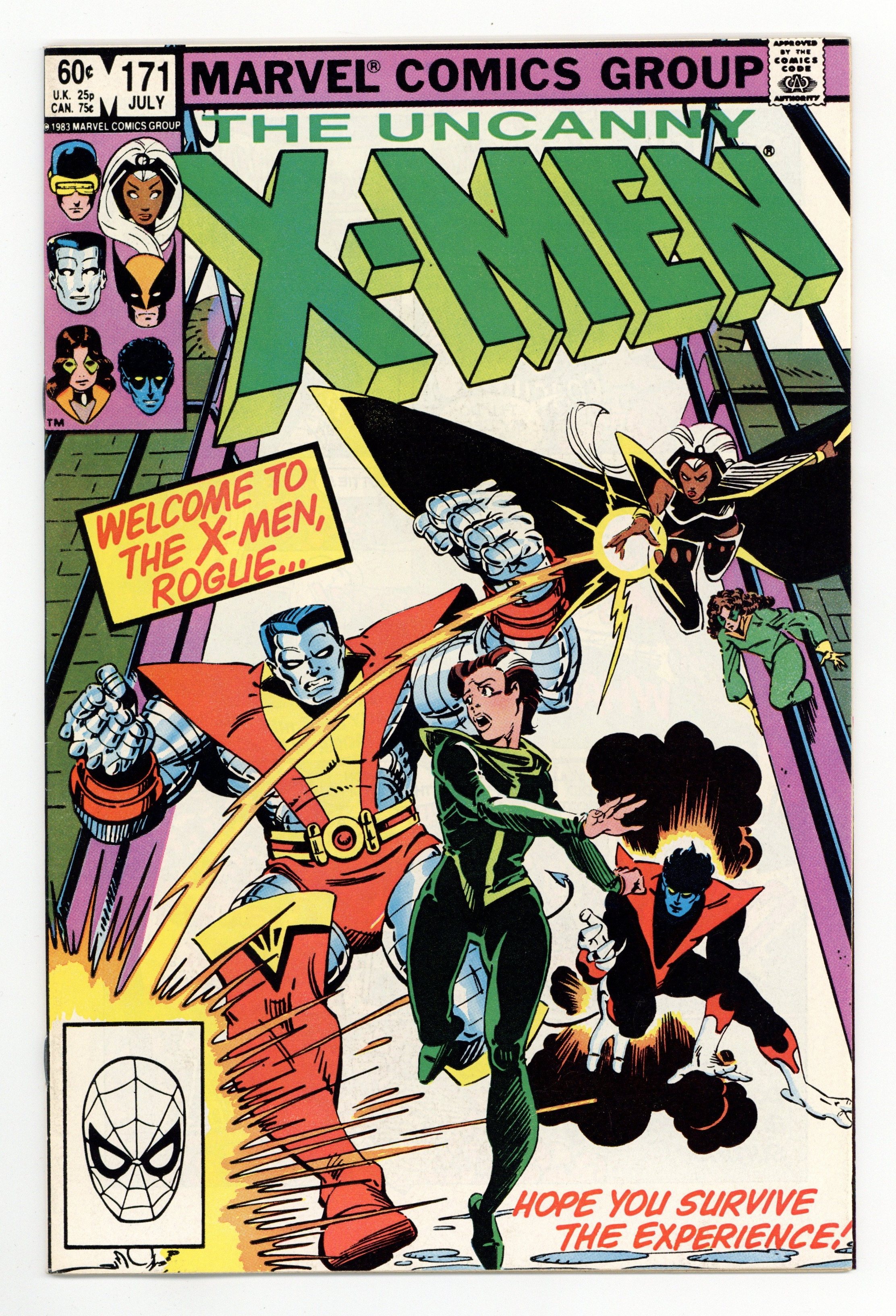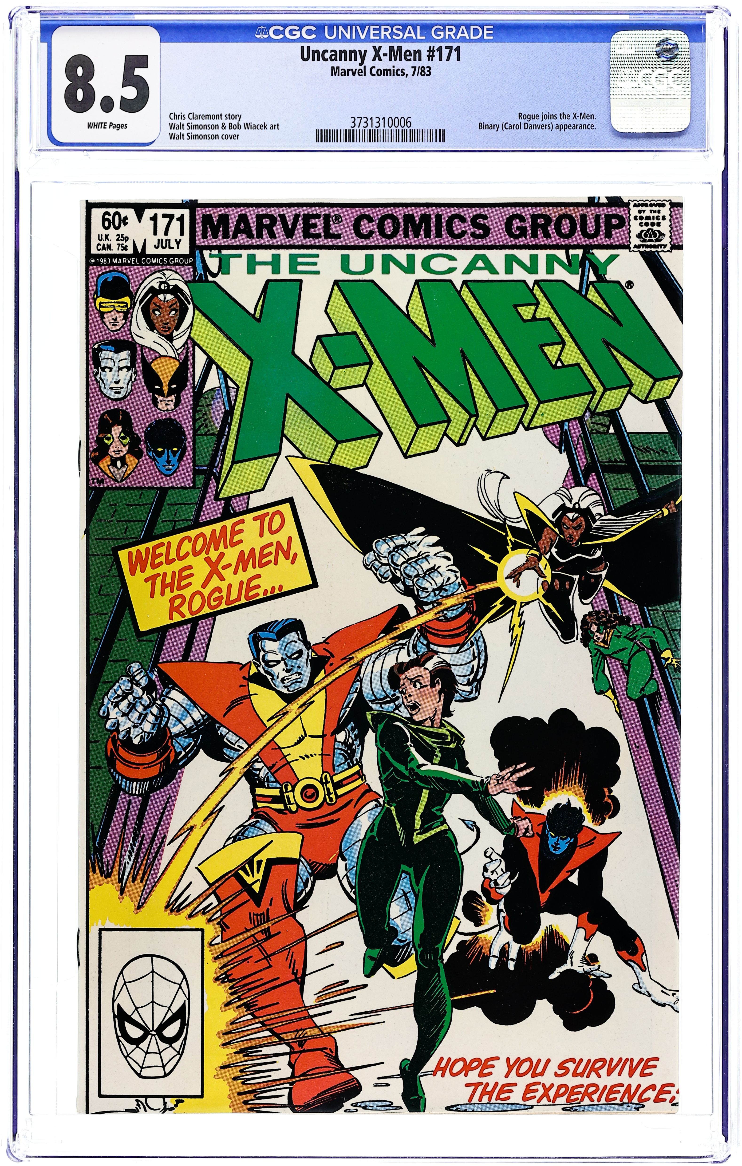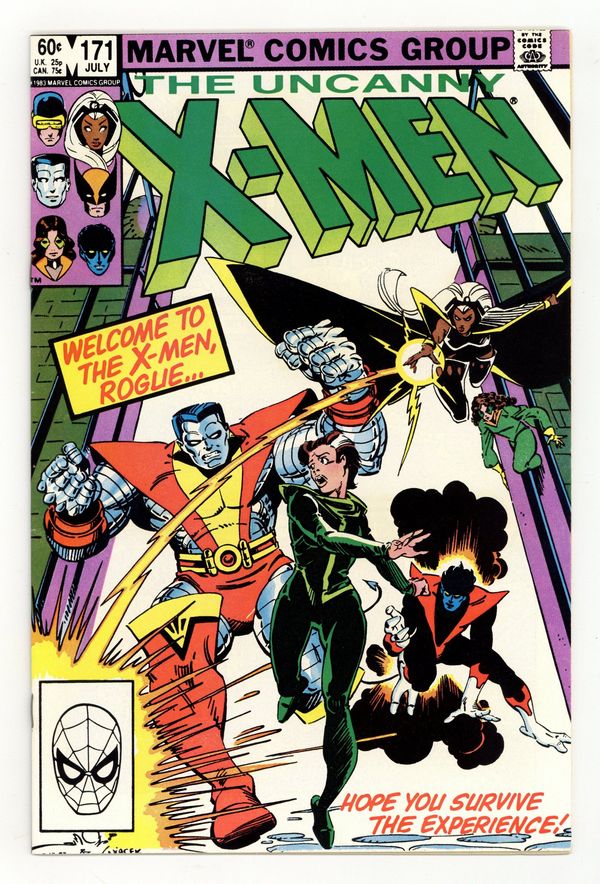 Direct Edition. "Rogue!" Guest-starring Binary. Story by Chris Claremont. Art by Walt Simonson and Bob Wiacek. Rogue has left the Brotherhood of Evil Mutants and arrives at the doorstep of Xavier's Institute seeking sanctuary and help from her erstwhile enemies, the X-Men. However, not everyone is prepared to welcome her with open arms, as the immensely powerful Binary returns for a little payback. Plus, Scott learns a peculiar secret about Madelyne. 36 pgs. Cover price $0.60.