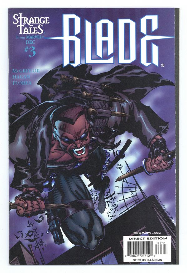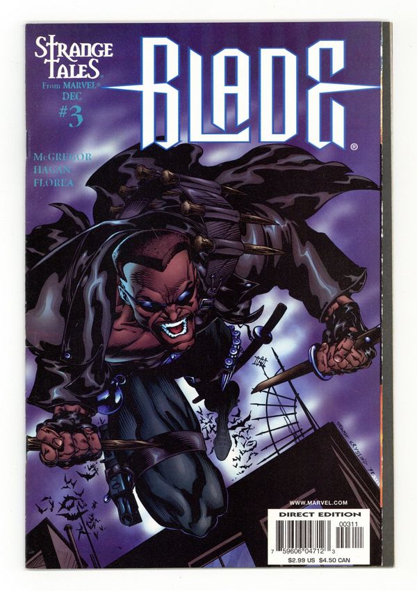 Caught in a web of intrigue, Blade continues his war with vampires in the streets of New Orleans! Why have the blood suckers infested the Big Easy? And who is Dominique Levant? Written by Don McGregor. Art by Brian Hagan and Sandu Florea. Cover by Bart Sears and Ray Kryssing. Cover price $2.99.
