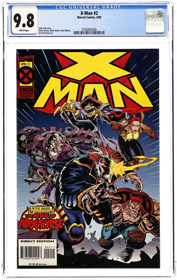 Age of Apocalypse: Part 2 of 4 - "Choosing Sides!" Story by Jeph Loeb. Art by Steve Skroce. The tyrant Apocalypse has become aware of a powerful mutant that may pose a threat to his rule. He sends his best assassin, Domino, to either recruit this new mutant, or destroy him. Meanwhile, Forge's troupe has been joined by Theresa, a newly discovered mutant with a sonic scream, and the mysterious Essex. Who is Essex and what does he have planned for Nate and his friends? Cover price $1.95.