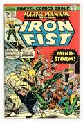 Tags: Martial Arts$19.25Cover pencils by Gil Kane, inks by Dan Adkins. Morning of the Mindstorm!, script by Chris Claremont, pencils by John Byrne, inks by Al McWilliams; Iron Fist arrives at the Wings to discover Colleen missing and Lee raving like a mad man; Danny and Scarfe try to track down Colleen but are assaulted by illusions courtesy of Angar; Beating Angar down, Iron Fist discovers a Stark International i.d. card on the villain and figures the company is behind the disappearance of his friend. Continued in Iron Fist (Marvel, 1975 series) #1. The letters page contains Marvel Value Stamp series A # 6 (Thor by John Buscema). 36 pgs. $0.25. Cover price $0.25.