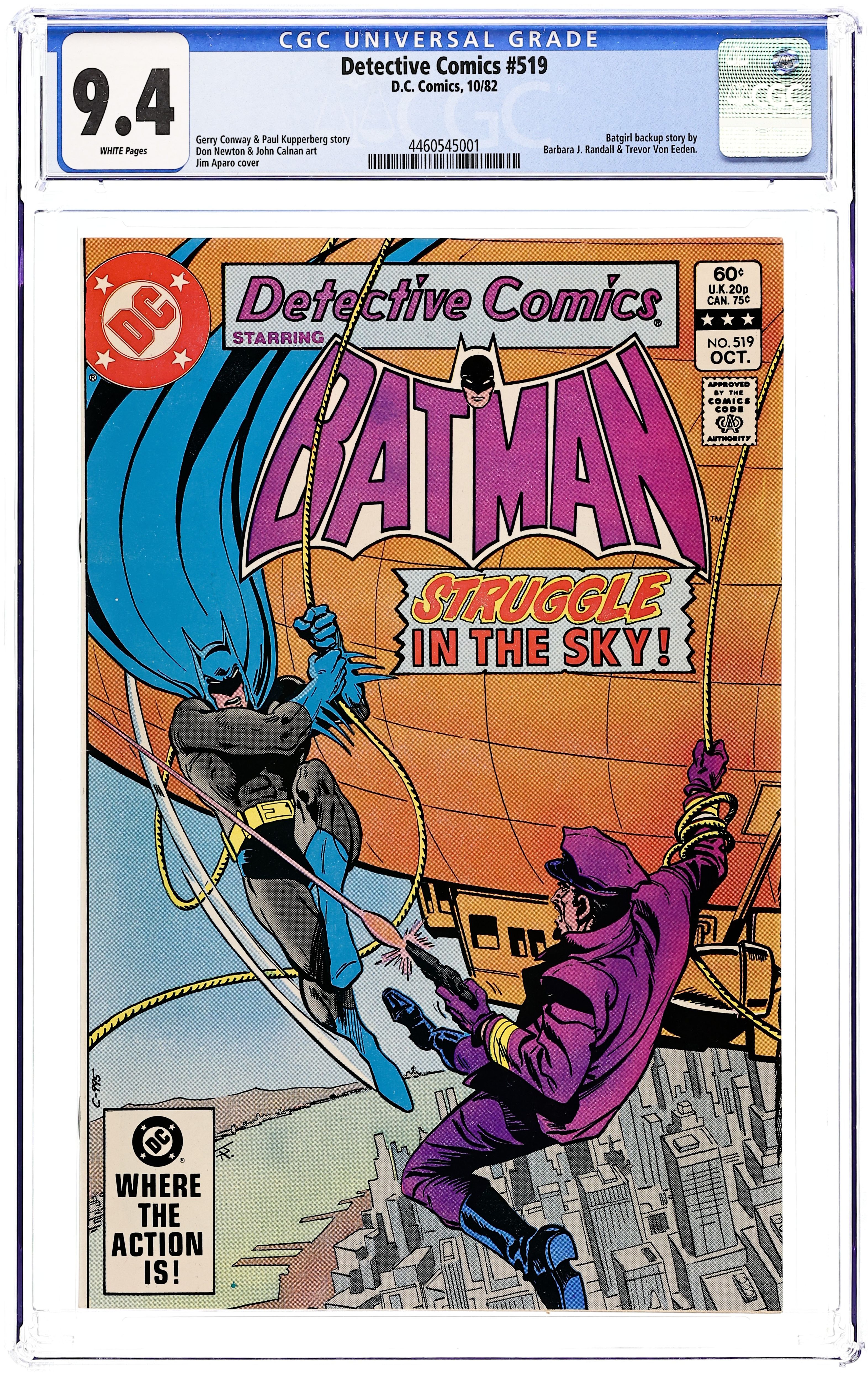 Cover by Jim Aparo. "...Like a Dreadnought in the Sky!", script by Gerry Conway (plot) and Paul Kupperberg (script), pencils by Don Newton, inks by John Calnan; Batman and Robin track down the dirigible with which Colonel Blimp has kidnapped a sub. "... When Velvet Paws Caress the Ground!", script by Barbara J. Randall, pencils by Trevor von Eeden, inks by Rodin Rodriguez; Batgirl captures the Velvet Tigers gang, but the Tiger herself escapes. Letter from T.M. Maple. 36 pgs., full color. $0.60. Cover price $0.60.