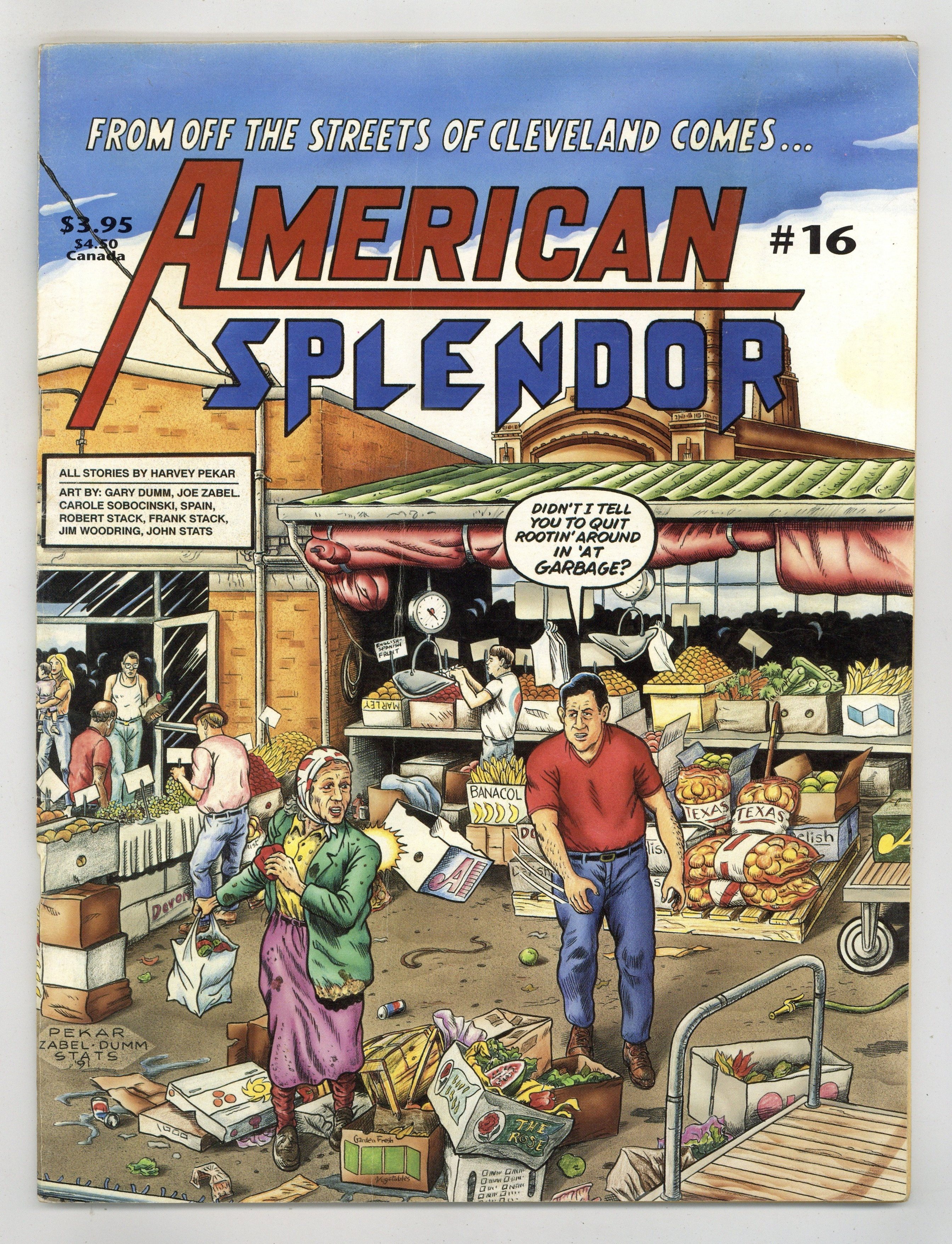 Cover pencils by Joe Zabel, inks by Gary Dumm. Bat, script by Harvey Pekar, pencils by Joe Zabel, inks by Gary Dumm; Harvey's relationship with a divorced woman is falling apart, and there's a bat loose in the house. Self Justification or Anticipating the Critics, script by Harvey Pekar, art by Frank Stack; Harvey is asked why he portrays black people so negatively in his comics. Watching The Media Watchers, script by Harvey Pekar, art by Jim Woodring; Harvey has written an article castigating lazy primetime news reporting. Easter Island, script by Harvey Pekar, pencils by Joe Zabel, inks by Gary Dumm; Sarah has a disappointing trip to New Mexico, remembers Harvey from years back and arranges to meet him. 60 pages, B&W. Cover price $3.95.