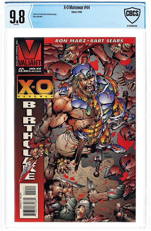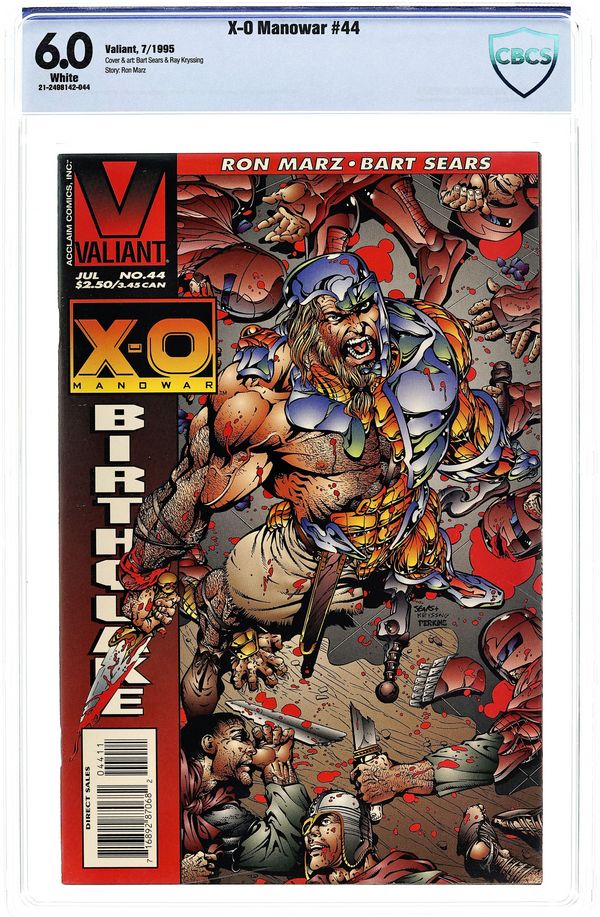 Birthquake. Part 1 of 4. Everything you thought you knew about X-O is wrong! Aric wakes up in a Roman prison in 409 A.D. to find his 43 present-day issues of adventure never happened! The X-O armor is just a figment of his imagination. Is Aric going mad, or is this the plot of a villain more deadly than any he's ever faced? "Reflections part one" is written by Ron Marz, with art and cover by Bart Sears and Ray Kryssing. Cover price $2.50.