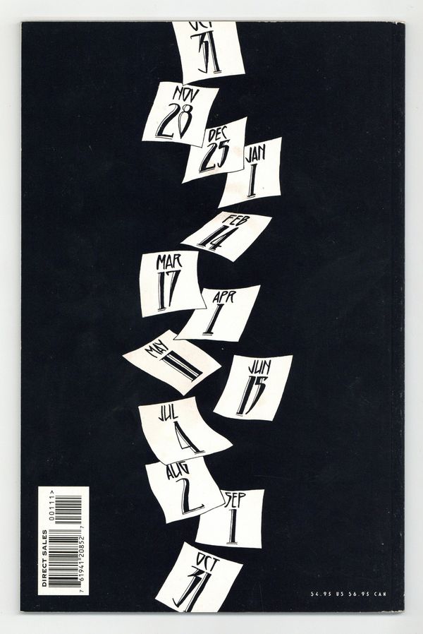 Starts Jan 26 Batman the Long Halloween, a prestige format series by the highly acclaimed and Eisner award-winning team of Jeph Loeb and Time Sale. This thrilling story features some of the most deadly and cunning members of Batman's Rogues gallery and a dramatic retelling of the origin of the tragic villain Two-Face. In this first issue (called "Crime"), Batman and Harvey Dent team up to find evidence against Carmine Falcone. Catwoman and Batman crash Falcone's penthouse. Script by Loeb, art and cover by Sale. Cover price $4.95.
