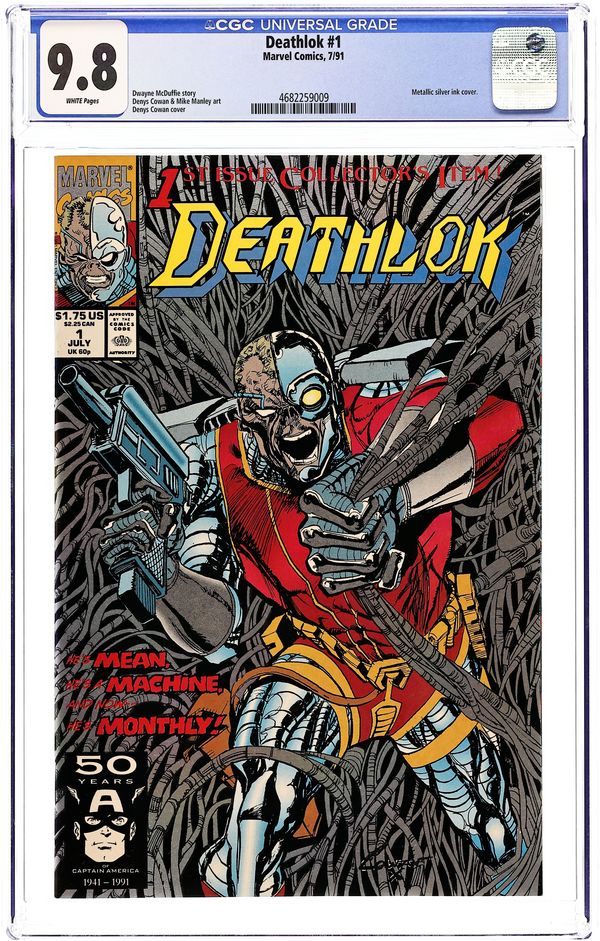 Direct Edition. Cover art by Denys Cowan. The Wolf Is At The Door, script by Dwayne McDuffie and Gregory Wright, pencils by Denys Cowan, inks by Mike Manley; Deathlok stops Harlan Ryker's warwolf from killing others who would testify against Ryker. 36 pgs. $1.75. Cover price $1.75.