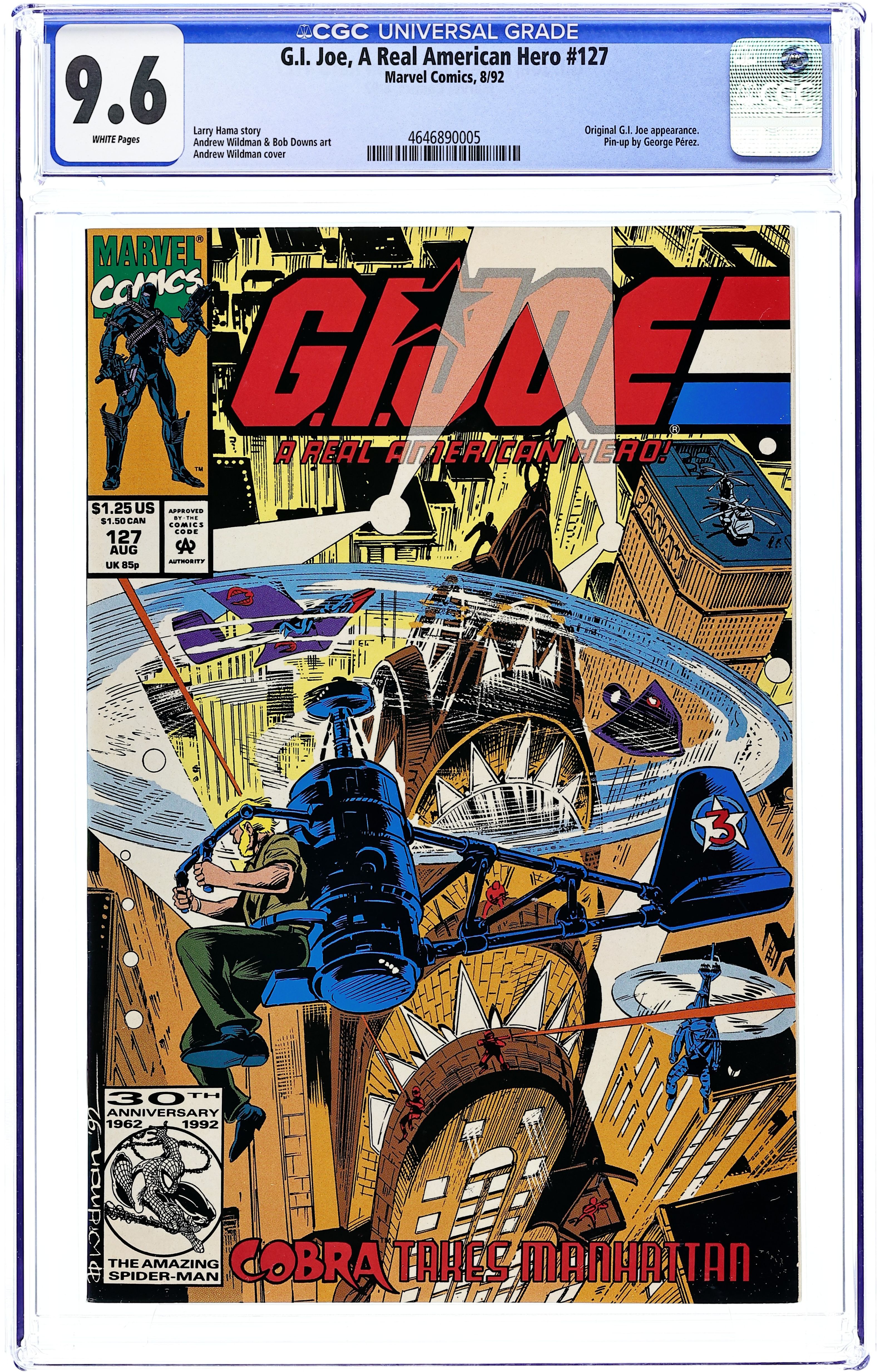 It's the return of the original G.I. Joe! Duke, Stalker and G.I. Joe confront Cobra Commander in "Playing with the Big Boys!" Written by Larry Hama, with art by Andrew Wildman, Bob Downs and Stephen Baskerville. Plus: a Baroness dossier drawn by George Perez. Cover by Andrew Wildman. Cover price $1.25.