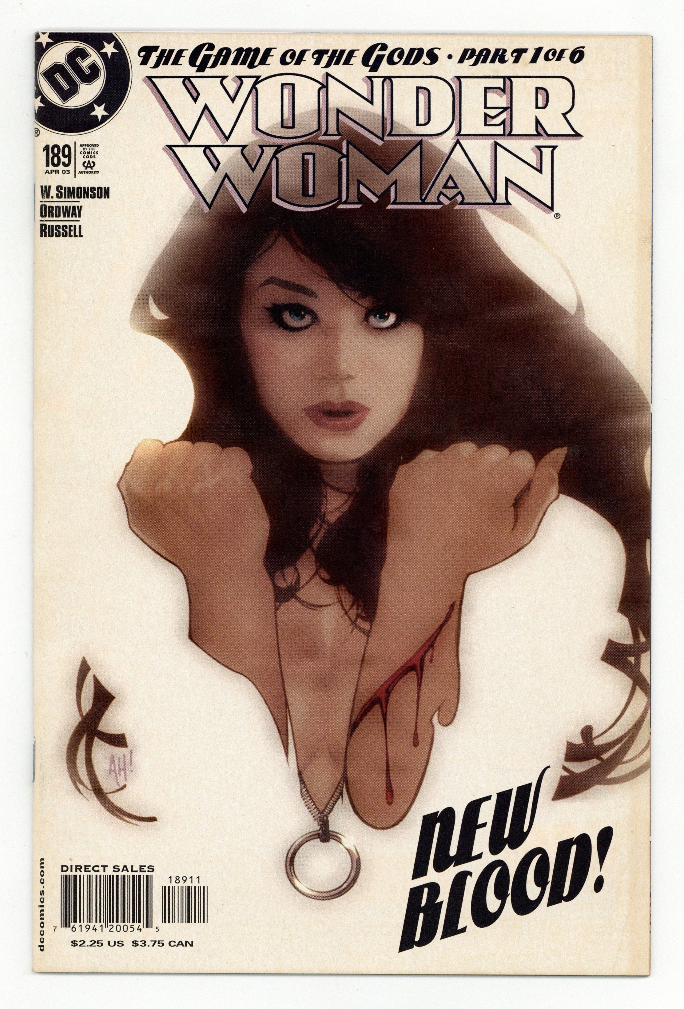 Tags: Wonder Woman$19.25Game of the Gods, Pt. 1 of 6. WRITTEN BY WALTER SIMONSON; ART BY JERRY ORDWAY AND P. CRAIG RUSSELL: COVER BY ADAM HUGHES Walter Simonson, Jerry Ordway and P. Craig Russell join cover artist Adam Hughes for an incredible 6-part adventure! Wonder Woman has vanished without a trace. Bereft of her memories, deprived of her gods-given abilities, and without her familiar costume, lasso and bracelets, Diana must fight off a horde of monstrous foes and find her way back to Earth from the Cryptocombs? the Cemetery of the Gods? all the while protecting a mysterious clay statue of a baby girl. For more information, see the feature article. FC, 36 PG.$2.25 Cover price $2.25.