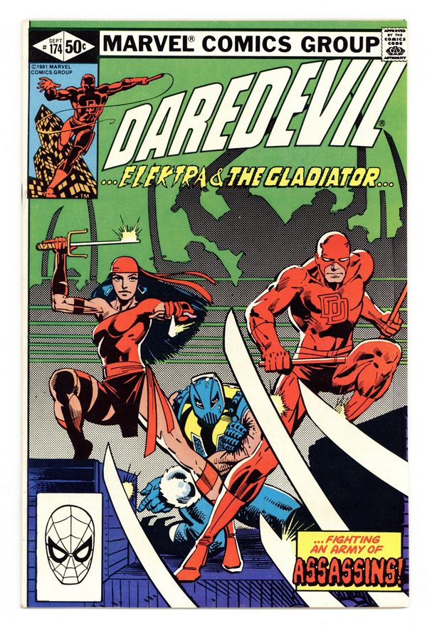 Direct Edition. Cover pencils by Frank Miller, inks by Klaus Janson. Elektra returns in The Assassination of Matt Murdock, script by Frank Miller, pencils by Frank Miller (breakdowns) and Klaus Janson (finished art), inks by Klaus Janson; Kingpin secretly hires the Hand to take out Matt Murdock, but Elektra and Gladiator get in the way; When the Hand blows up his law office, DD loses his radar sense due to the blast; 1st appearance of The Hand (ninja assassins). 36 pgs. Cover price $0.50. Cover price $0.50.