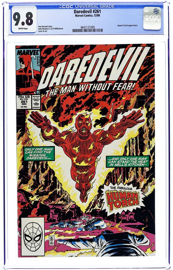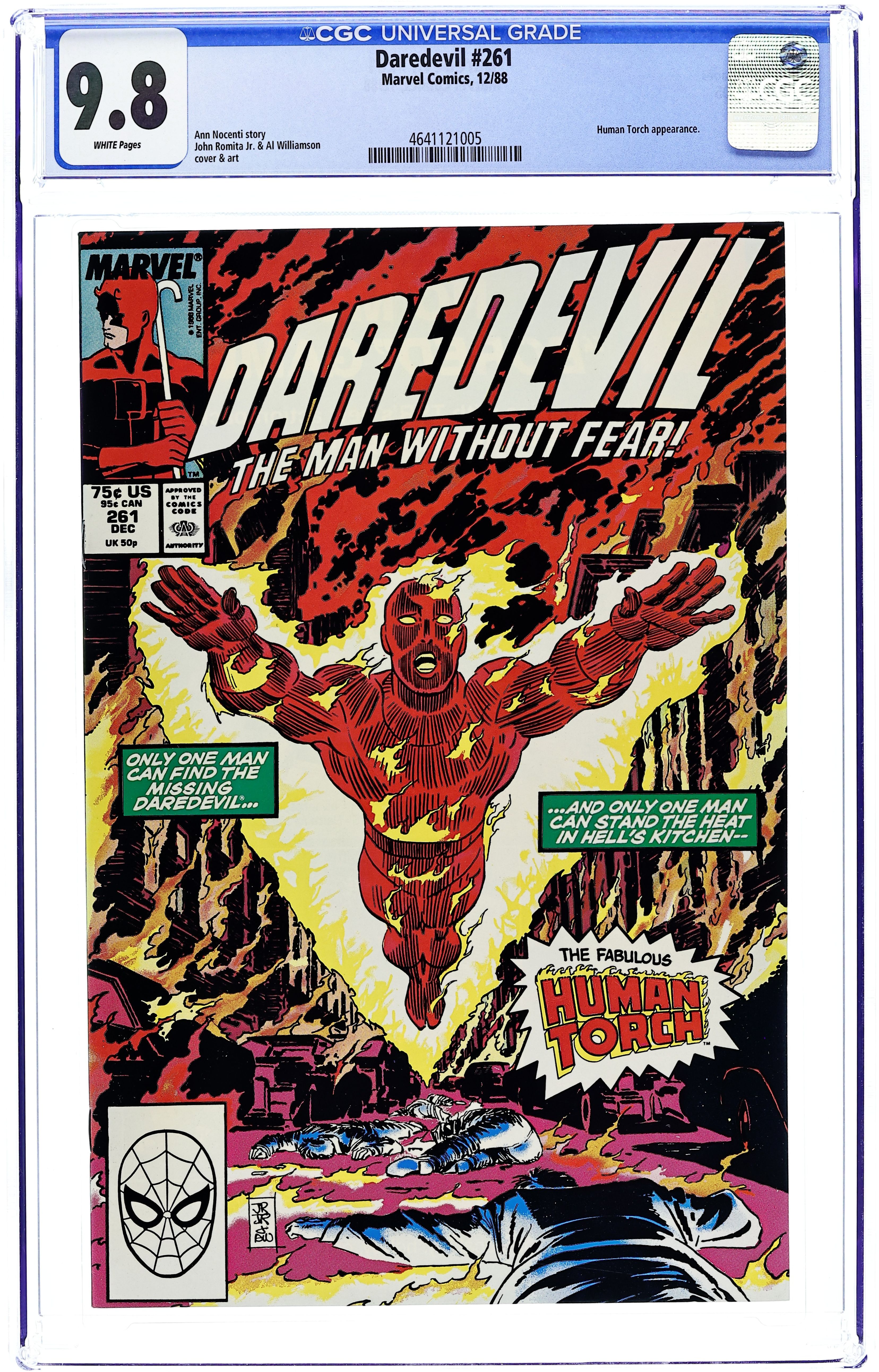 Direct Edition. Cover pencils by John Romita, Jr., inks by Al Williamson. Meltdown! starring the Human Torch [Johnny Storm], Karen Page, The Fatboys, Typhoid Mary, and the Kingpin, script by Ann Nocenti, pencils by John Romita, Jr., inks by Al Williamson; The Torch helps a desperate Karen search for a dying Daredevil, who is only seen on the last page. Letters to the editor from Charlies Novinskie (Topps Comics). 32 pgs. Cover price $0.75. Cover price $0.75.