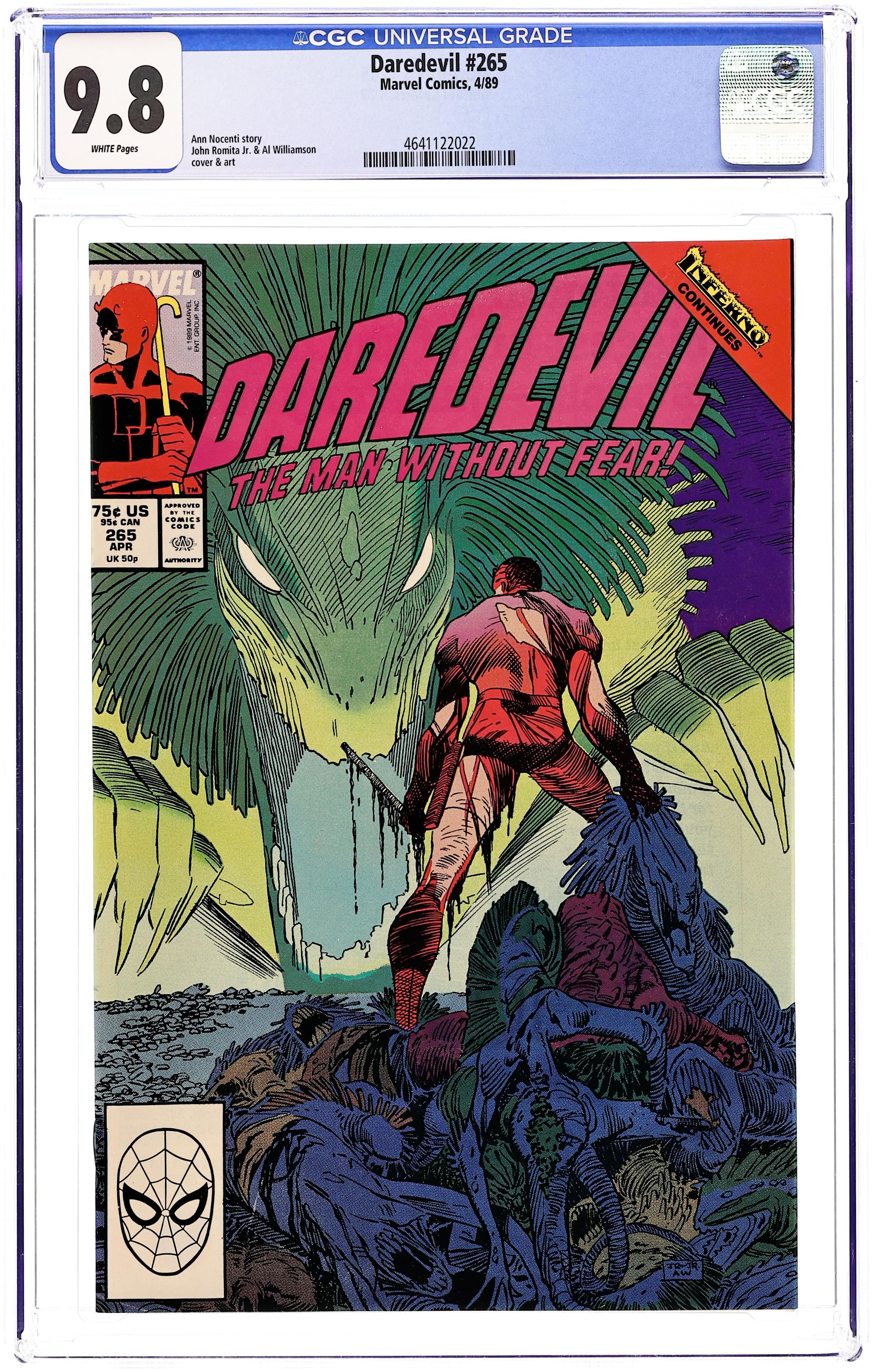 Cover pencils by John Romita, Jr., inks by Al Williamson. We Again Beheld the Stars, script by Ann Nocenti, pencils by John Romita, Jr., inks by Al Williamson; Daredevil battles through a city gone mad as New York bows under the demonic onslaught of Inferno; Inferno crossover. Letter from comics writer and editor Eric Fein. The letters page also contains a statement of ownership--average print run 292,070; average paid circulation 182,310. 32 pgs. Cover price $0.75. Cover price $0.75.