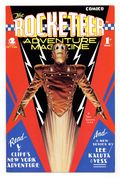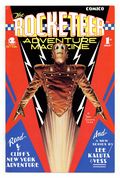 Cover by Dave Stevens. "Cliffs New York Adventure" 14 pages. Part 6 of 8. Story continues from Rocketeer Special Edition. Story and art by Dave Stevens. Cliff follows Betty to New York before she sets off for Europe. But the reunion might not go exactly as planned. "George Townson. Flying the Autogiros." 4 pages. Text feature. "Buy, Buy, Birdie." 10 pages. Story by Elaine Lee. Pencils by Michael Kaluta. Inks by Charles Vess. Attempting to win a badminton contest, the Galactic Girl Guides develop a birdie shooting robot. Should have left out the real bird eggs though. 32 pages. Full color. Cover price $2.00.