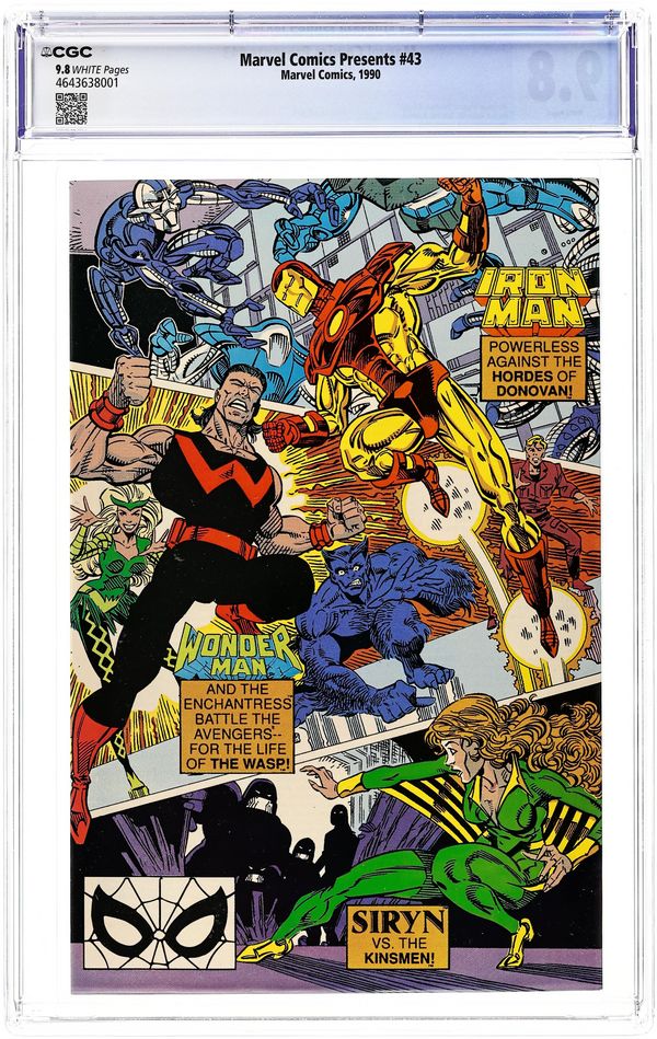 Cover pencils by Erik Larsen, inks by Al Gordon. Black Shadow! White Shadow! Part 6: Haven, starring Wolverine, script by Marv Wolfman, art by John Buscema. Stardust Miseries Part 6: Something In The Way She Moves starring Wonder Man, script by Michael Higgins, pencils by Javier Saltares, inks by Jose Marzan. Donovan's Brains starring Iron Man, script by Ed Simmons, pencils by Mark Bagley, inks by Keith Williams. Hello Little Girl... Is Your Father Home? starring Siryn, script by Scott Lobdell, pencils by Larry Stroman, inks by Sam Grainger. Back cover pencils by Larsen. 36 pgs. Cover price $1.25.