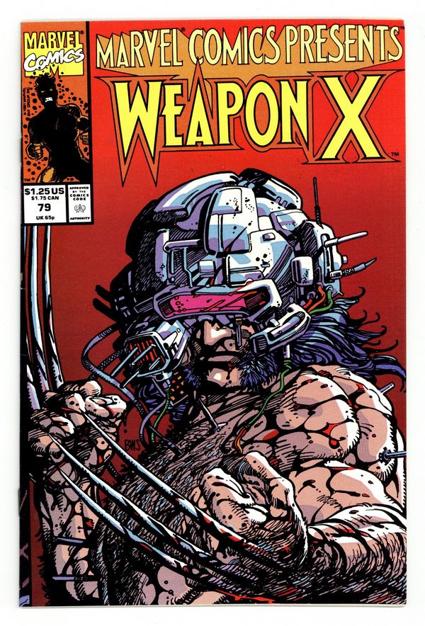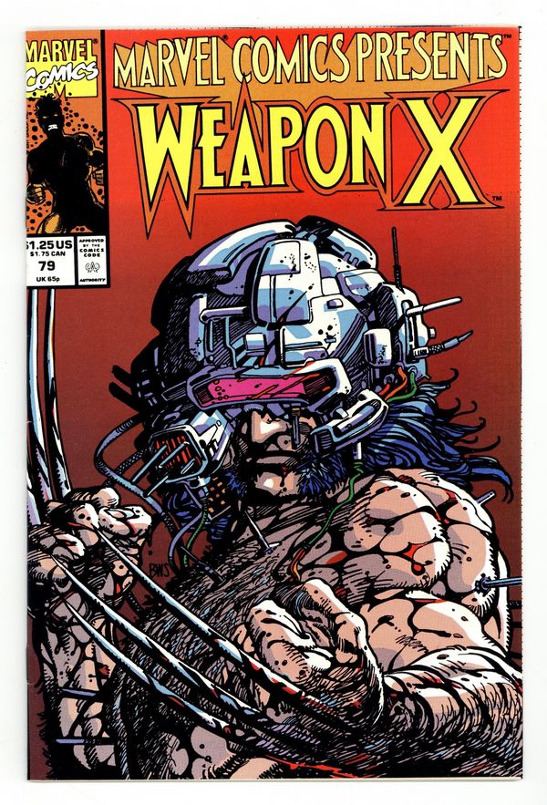 Tags: Wolverine Weapon X (part 7), Anthology / Collection$8.40Cover art by Barry Windsor-Smith. Weapon X (chapter 7), script and art by Barry Windsor-Smith. Rumanian Rumble Part 3: The Wages of Sin starring Sgt. Fury and Dracula, script by Doug Murray, pencils by Tom Lyle, inks by Joe Rubinstein. The Tender and the Vulgar starring Sunspot, script by Daryl Edelman, pencils by John Byrne. A Nightmare on Bleecker Street starring Dr. Strange, script by Robert Campanella, pencils by Steve Geiger, inks by Mark McKenna. Back cover art by Mike Mignola. 36 pgs. Cover price $1.25.