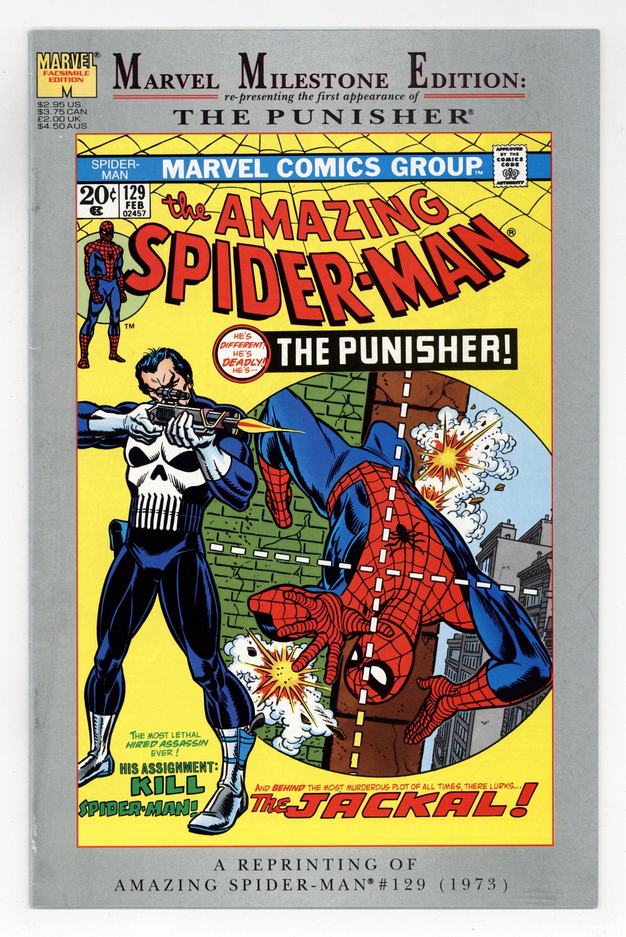 Reprints Amazing Spider-Man 129 (1st Punisher). Says "Second Printing" in indicia, but it's actually the first printing as a Marvel Milestone Edition. Cover price $2.95.