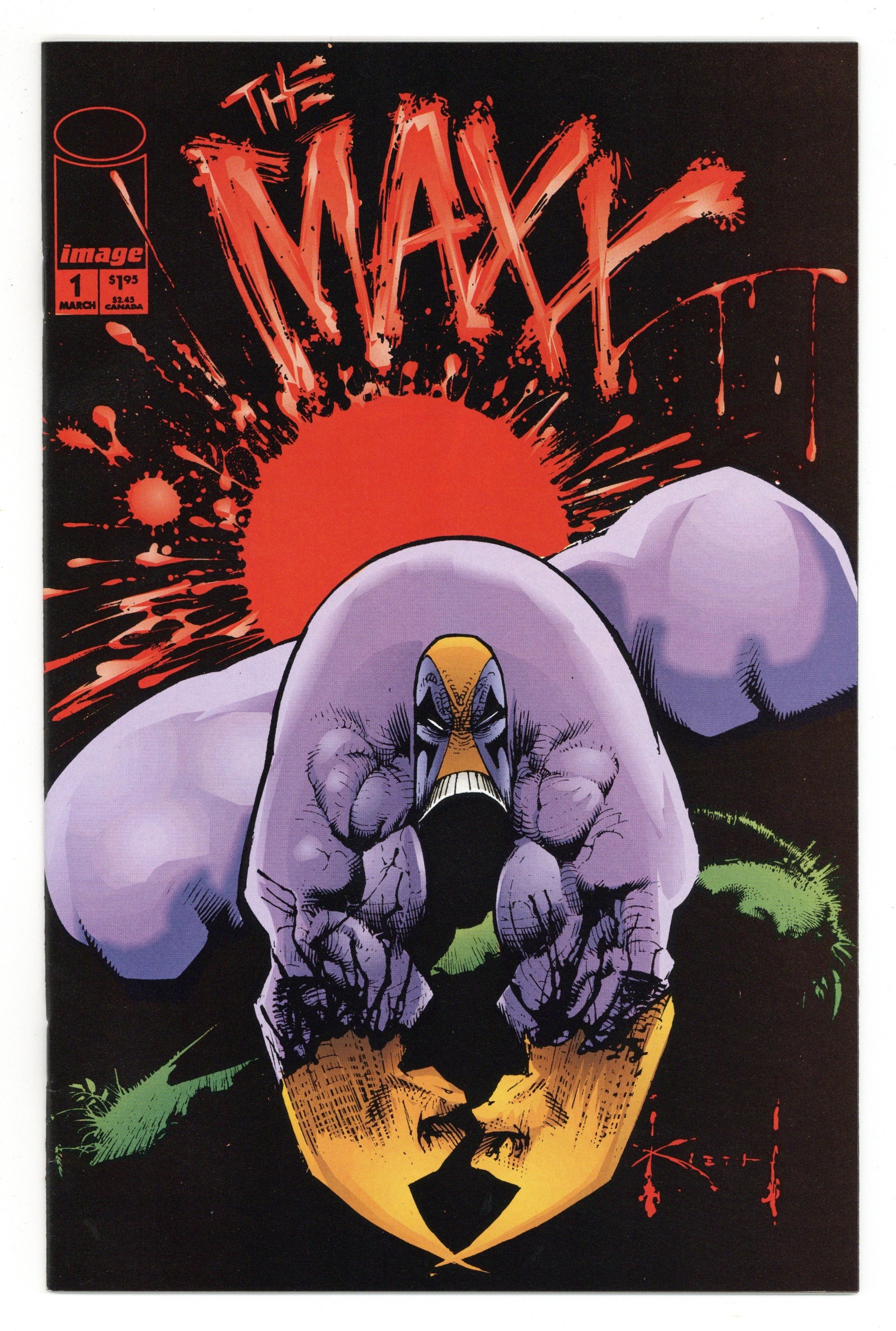 Direct Edition. Cover art by Sam Kieth. Maxx, script by Sam Kieth (plot) and William Messner-Loebs (script), pencils by Sam Kieth, inks by Sam Kieth and Jim Sinclair (finishes); Social worker Julie goes above and beyond the call of duty when she bails the Maxx out of jail yet again. Back cover features Kieth's art for the cover of #2. 36 pgs. $1.95. Cover price $1.95.