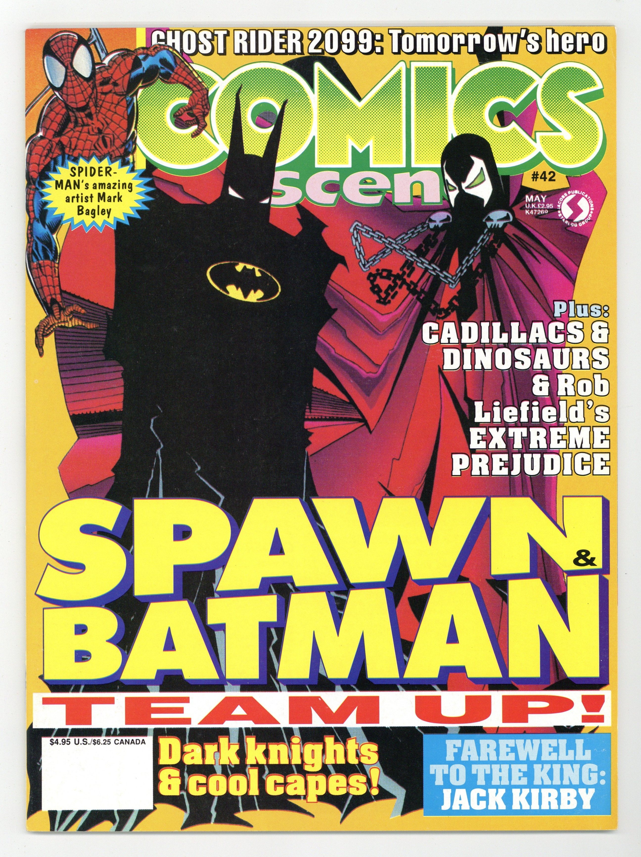 $23.00Joe Simon, Gil Kane, Larry Lieber, Dick Ayers, Joe Sinnott, Don Heck, John Romita, Sr., John Buscema, Carmine Infantino and Will Eisner remember Jack Kirby; Ron Marz discusses Cosmic Powers; Len Kaminski discusses Ghost Rider 2099; Eric Stephenson discusses Extreme Prejudice; Beau Smith discusses The G.R.I.P.; Todd McFarlane and Frank Miller discuss Spawn/Batman: Red Scare; Tony Caputo and Allen Curtis duscuss Syphons; Mark Bagley discusses Amazing Spider-Man; Mark Schultz discusses Cadillacs & Dinosaurs; article on the aborted She-Hulk tv pilot. Cover price $4.95.