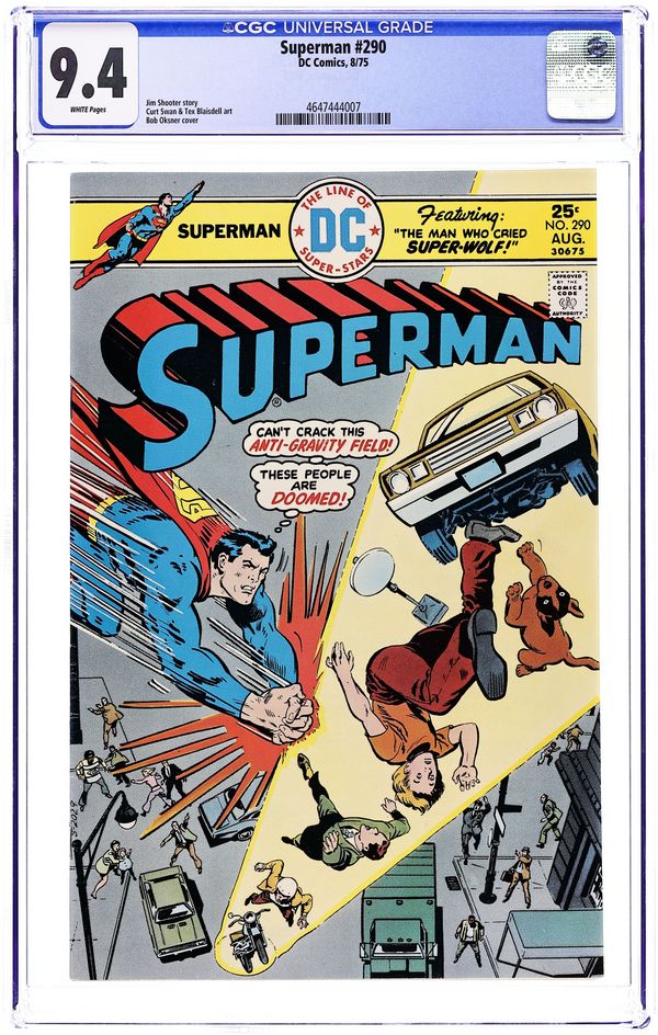 Cover art by Bob Oksner. The Man Who Cried Super-'Wolf'!, script by Jim Shooter, pencils by Curt Swan, inks by Tex Blaisdell; a street-sweeping jokester must convince Superman that someone is trying to kill the Man of Steel. Babble, Babble, Toil and Trouble! starring Mr. Mxyzptlk, Clark Kent, Superman, Steve Lombard, Oscar Asherman, and Josh Coyle, script by Elliot S! Maggin, pencils by Curt Swan, inks by Tex Blaisdell. 36 Pages, Full Color. Cover price $0.25.