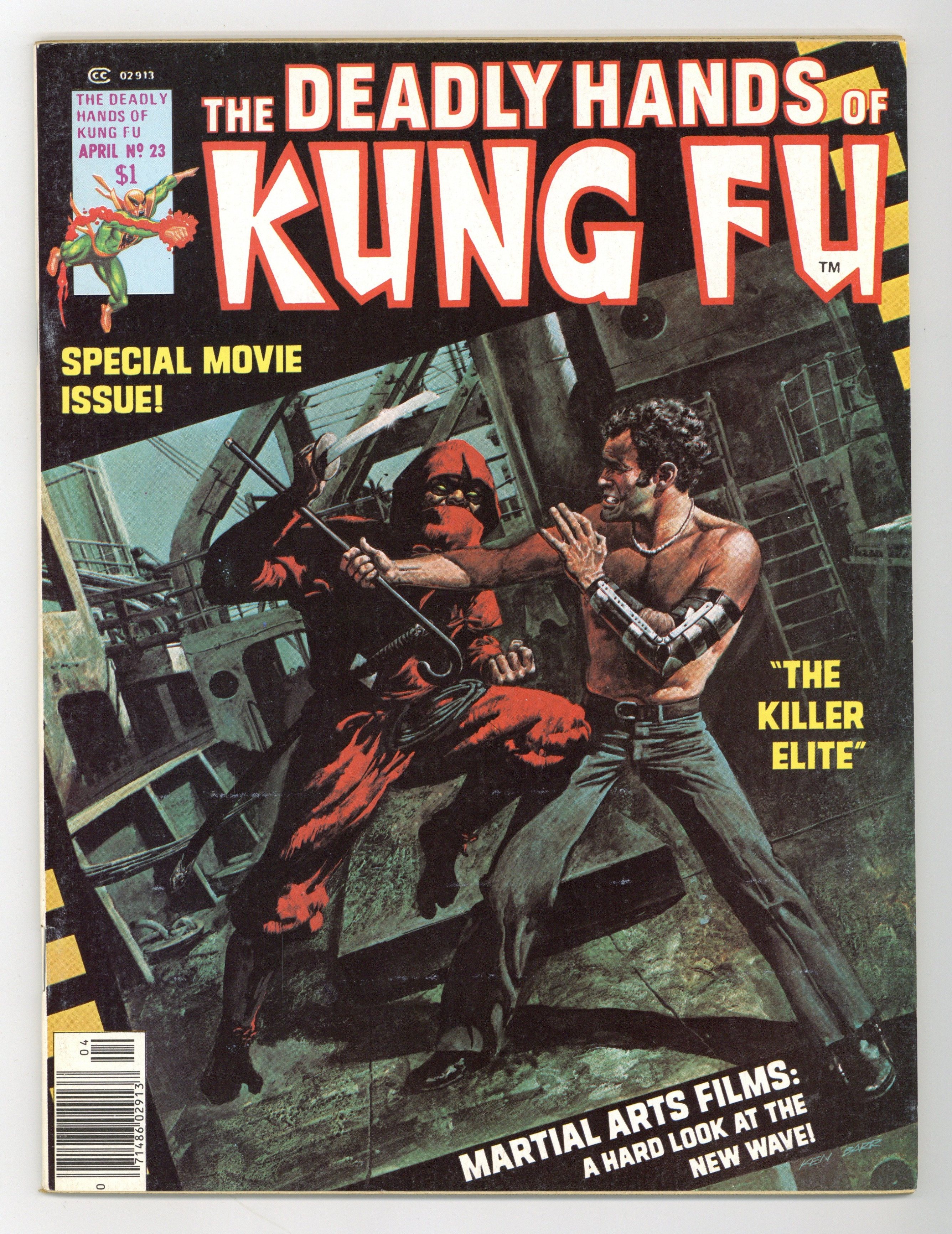 Stan Lee Presents: The Deadly Hands of Kung Fu. Special Movie issue. Cover by Ken Barr. Includes: "Enter the Letters!" A letters page with readers' thoughts on previous issues. An editorial by John David Warner. Iron fist stars in "Bridge of Sorrow, Bridge of Pain!" Story by Chris Claremont. Art by Rudy Nebres. "Killers in Review!" A look at Sam Peckinpah and the martial arts by John David Warner. "The Dragon Flies!" An article by David Kraft. Plus, the Sons of the Tiger and the White Tiger star in "Revenge is the Jack of Hearts, Tiger!" Guest-starring Jack of Hearts (2nd appearance). Story by Bill Mantlo. Art by Gil Kane and Rico Rival. Includes a B&W poster of Shang Chi, the Master of Kung Fu. Black and white. Cover price $1.00.