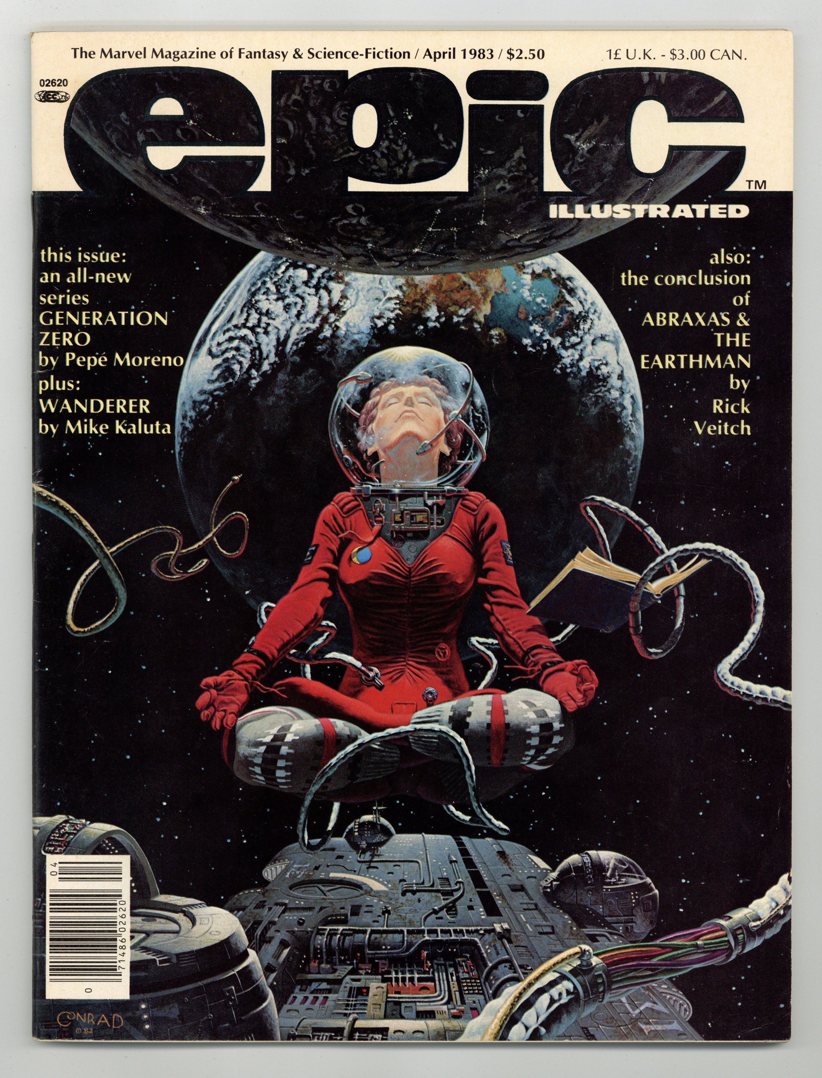 $8.50Cover art by Tim Conrad. The Chess Game featuring Generation Zero, script by Pepe Moreno (plot) and Archie Goodwin (script), art by Pepe Moreno. Phantom City featuring Generation Zero, script by Pepe Moreno (plot) and Archie Goodwin (script), art by Pepe Moreno. Mime, script and art by Will Brown. Man and Whale (Chapter Eight) starring Abraxas And The Earthman, script and art by Rick Veitch. Time Bomb starring Dr. Watchstop, script and art by Ken Macklin. Mediaview by Dennis O'Neil. Weird Adventures on Other Worlds: An Informal History of Planet Comics article by Ron Goulart. The Departure (Chapter Three)--Last Of The Dragons, script by Dennis O'Neil (script) and Carl Potts (plot), pencils by Carl Potts, inks by Terry Austin. Wanderer, script by Archie Goodwin, art by Michael Kaluta. Gameview by Steven Grant. Textpiece with art from Walter Simonson's Star Slammers. Godfather Death, script and art by Scott Hampton; The Brothers Grimm adaptation. 100 pgs. Oct, 1983. $2.50. Cover price $2.50.